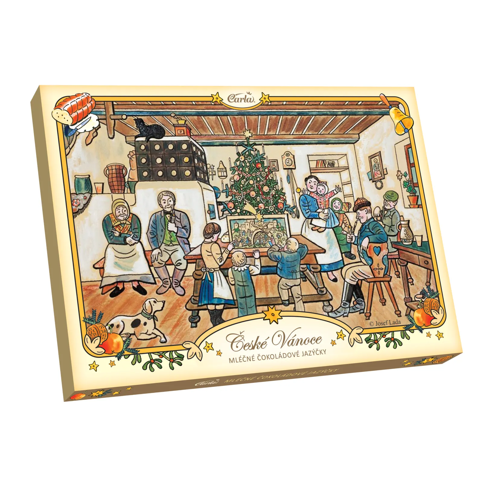 Vlastnosti a výhody: Lahodná čokoládová pochoutka v podobě jazýčků je ideální volbou pro mlsání. V balení navozující vánoční atmosféru díky obrázku Josefa Lady.