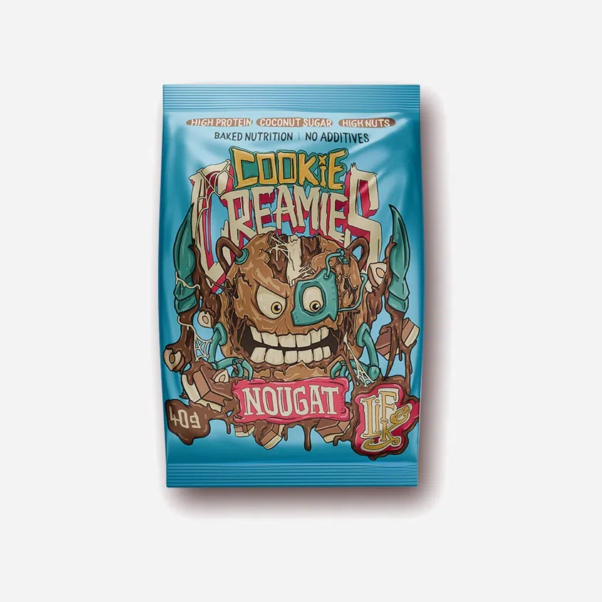 Pečená plněná nugátová proteinová cookie, bez lepku.
