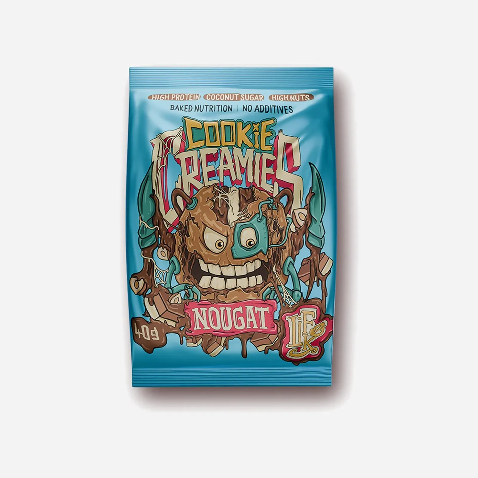 Složení: Kešu ořechy, Nugátový krém 19% (lískové ořechy, kokosvý cukr, kakao, kokosový olej) , mléčný protein (mléko) 15%, lískové ořechy, rýžový sirup, prebiotická vláknina z kukuřice, datlová pasta, zvlhčující látka: glycerol, alkalizovaný kakaový prášek, himalájská sůl, kypřící látka: vinný kámen.