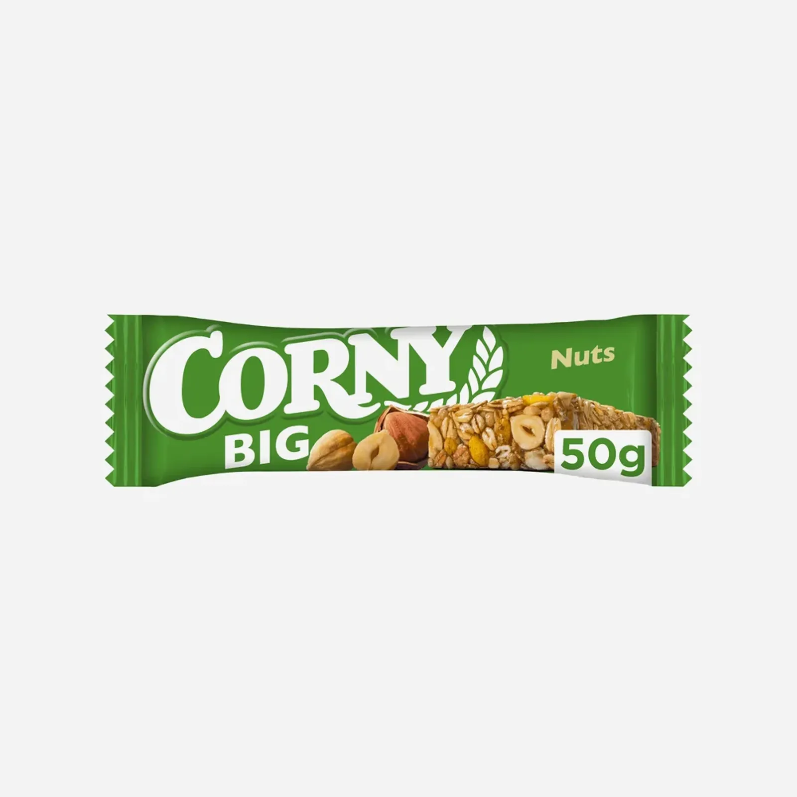 Máš hlad? Corny Big s lískovými oříšky je oblíbená cereální tyčinka, která tě jistě zasytí. Ideální jako svačina mezi jídly nebo když tě honí mlsná. Obsahuje celozrnné cereální vločky a křupinky doplněné porcí pečlivě pražených lískových oříšků. Pro milovníky lískových oříšků: kombinace vynikajících cereálií a pražených oříšků, která tě ohromí.