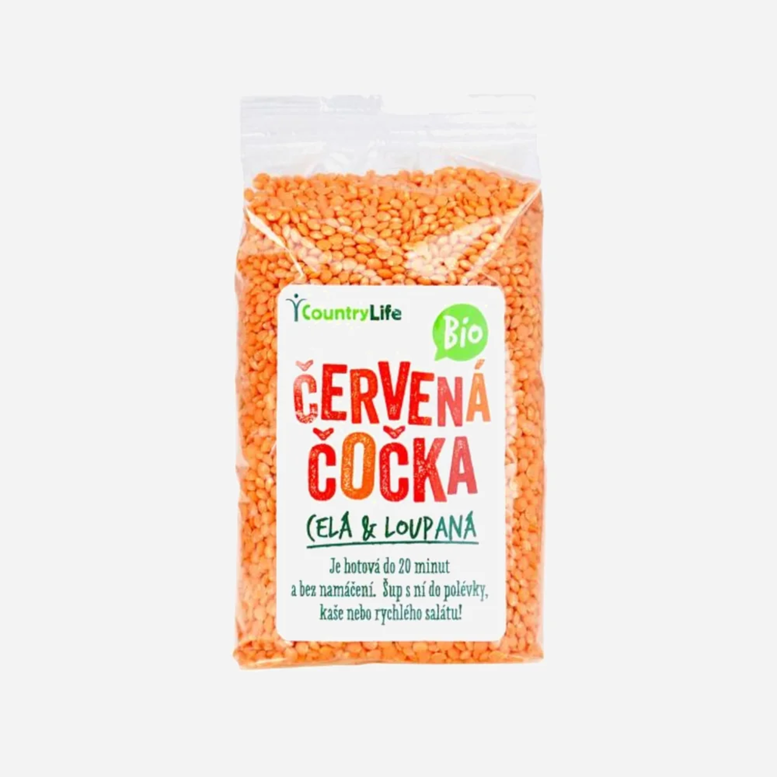 Country Life Čočka červená celá loupaná BIO, 500 g
