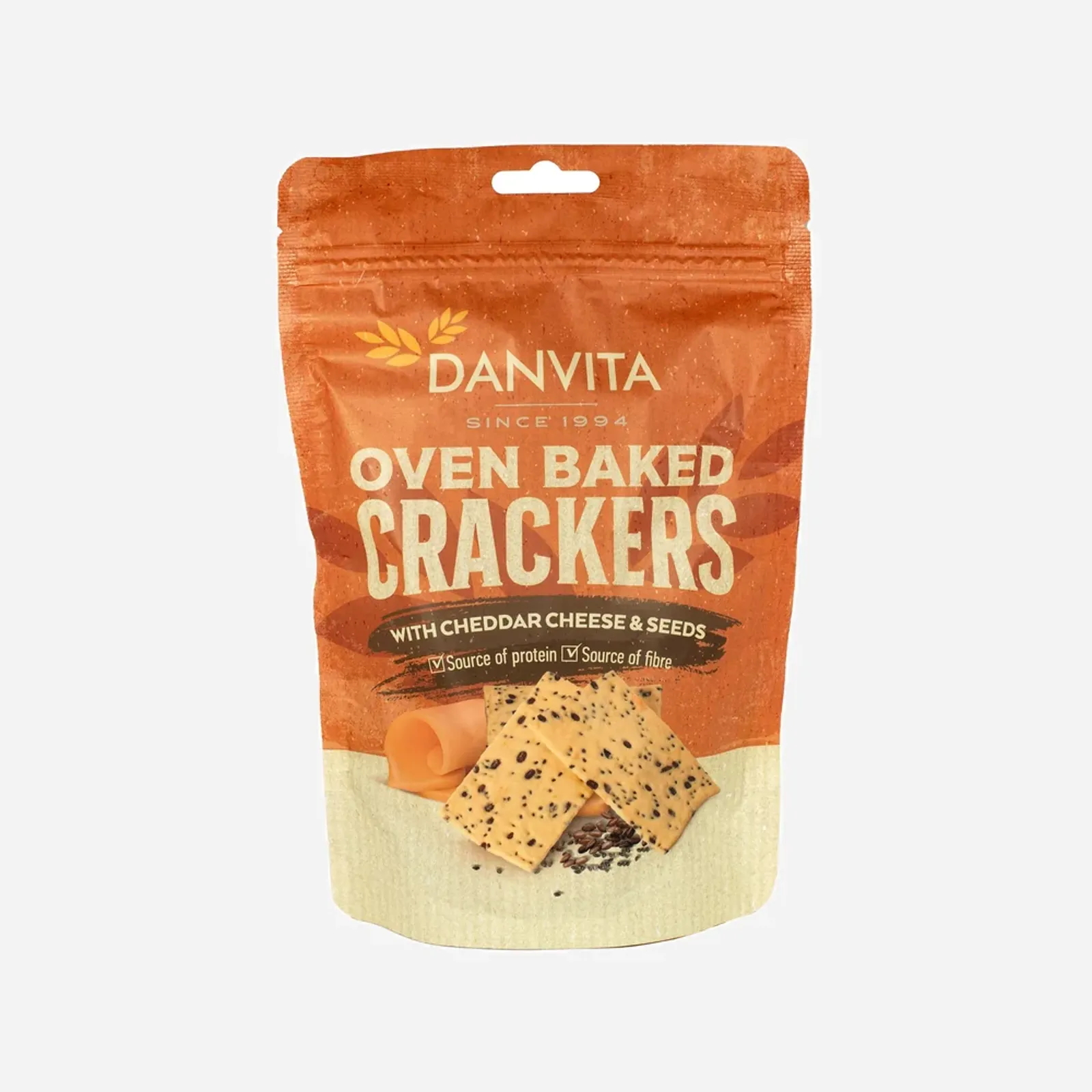 Danvita Křehké pšeničné krekry se sýrem čedar a semínky, 100 g