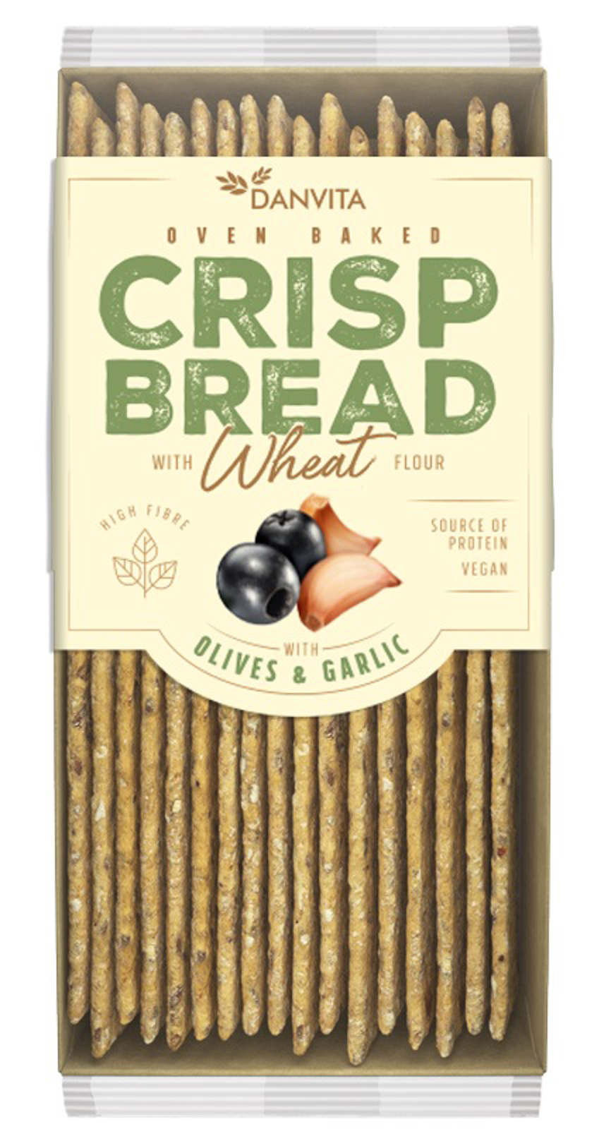 Danvita Křehké pšeničné plátky s olivami a česnekem, 130 g