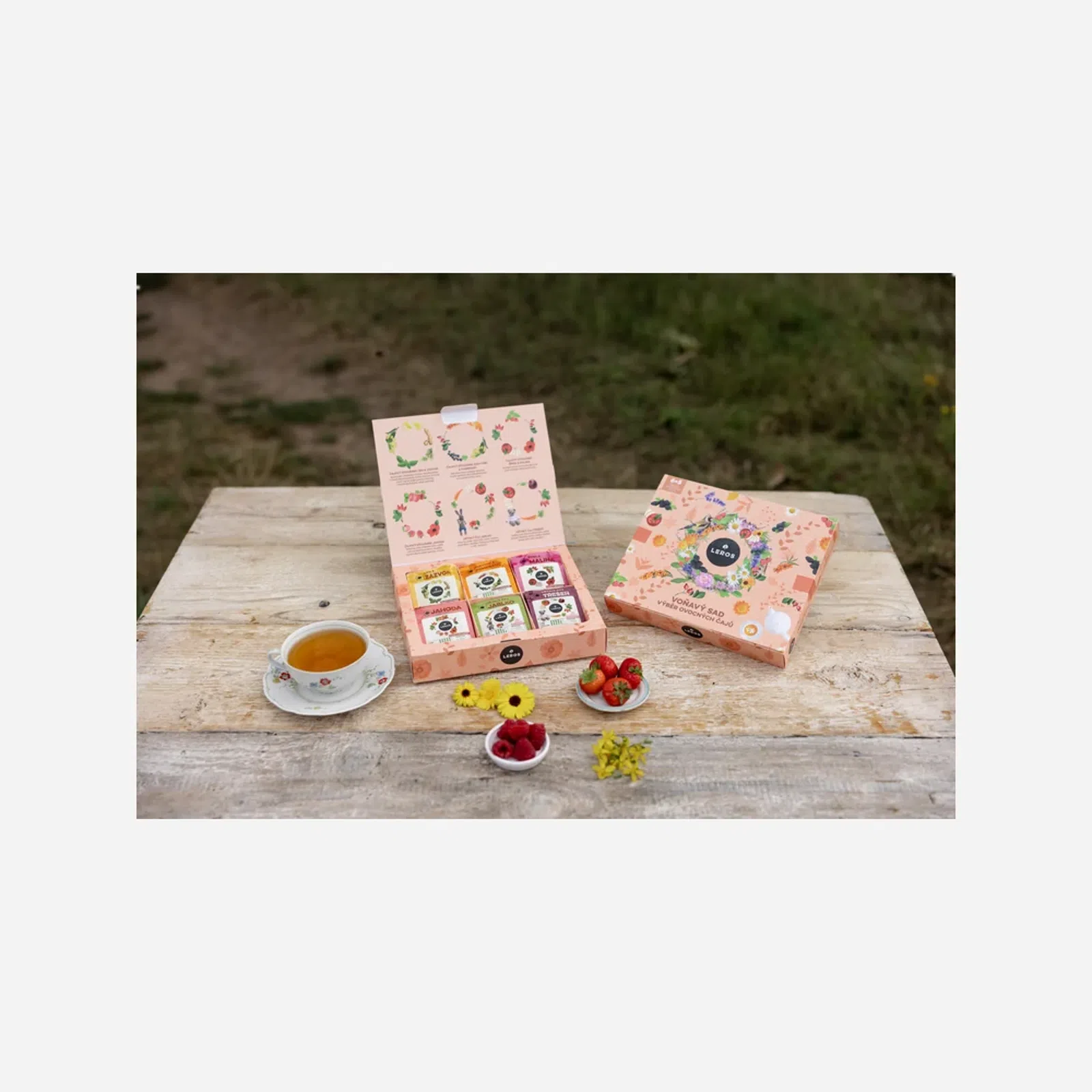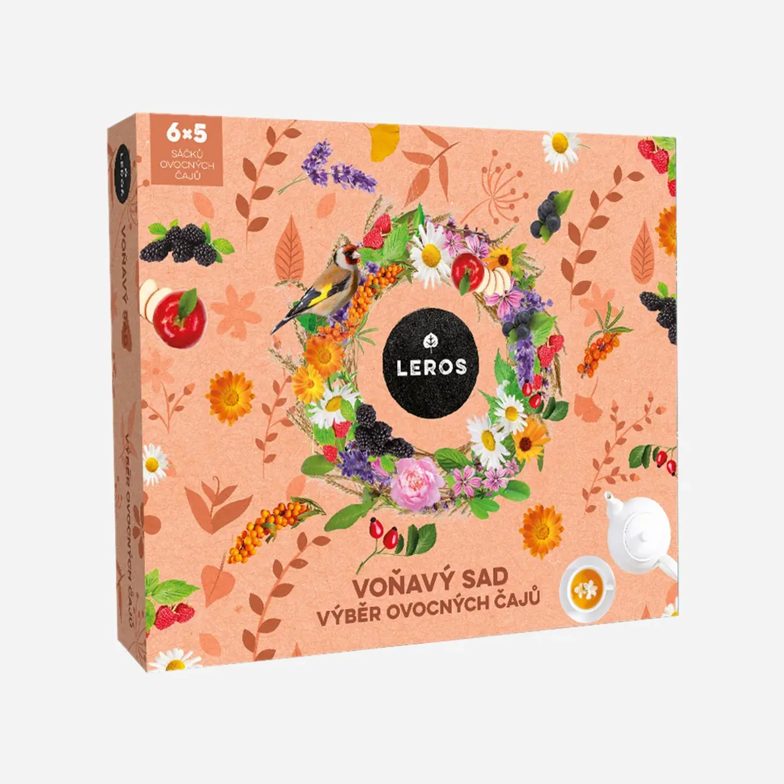 Složení: LEROS ČAJOVÝ DÝCHÁNEK, LÍPA & ZÁZVOR: Oddenek zázvoru (30 %), nať máty peprné (24 %), květ lípy (22 %), rooibos (10 %), citronové aroma, kyselina citronová, přírodní zázvorové aroma, kůra citronu (1 %).LEROS ČAJOVÝ DÝCHÁNEK, RAKYTNÍK & POMERANČ: Plod šípku (45 %), květ lípy (18 %), plod rakytníku (10 %), plod černého rybízu (9 %), přírodní pomerančové aroma (8 %), rooibos (5 %), diviznový květ (4 %), pomerančová kůra (1 %).LEROS ČAJOVÝ DÝCHÁNEK, ŠÍPEK & MALINA: Plod šipku (38 %), květ ibišku (25 %), jablka (20 %), list maliníku (10 %), přírodní aroma (7 %).LEROS ČAJOVÝ DÝCHÁNEK JAHODA: Plod šipku (35 %), květ ibišku (30 %), jablko (15 %), jahoda (15 %), přírodní aroma (5 %). LEROS DĚTSKÝ ČAJ JABLKO: Jablko (40 %), šípek (25 %), květ ibišku (15 %), kořen mrkve (8 %), rooibos (7 %), přírodní aroma (5 %). LEROS DĚTSKÝ ČAJ TŘEŠEŇ: Jablko (38 %), šípek (25 %), květ ibišku (15 %), kořen mrkve (12 %), kořen červené řepy (3 %), třešeň (2 %), přírodní aroma (5 %).