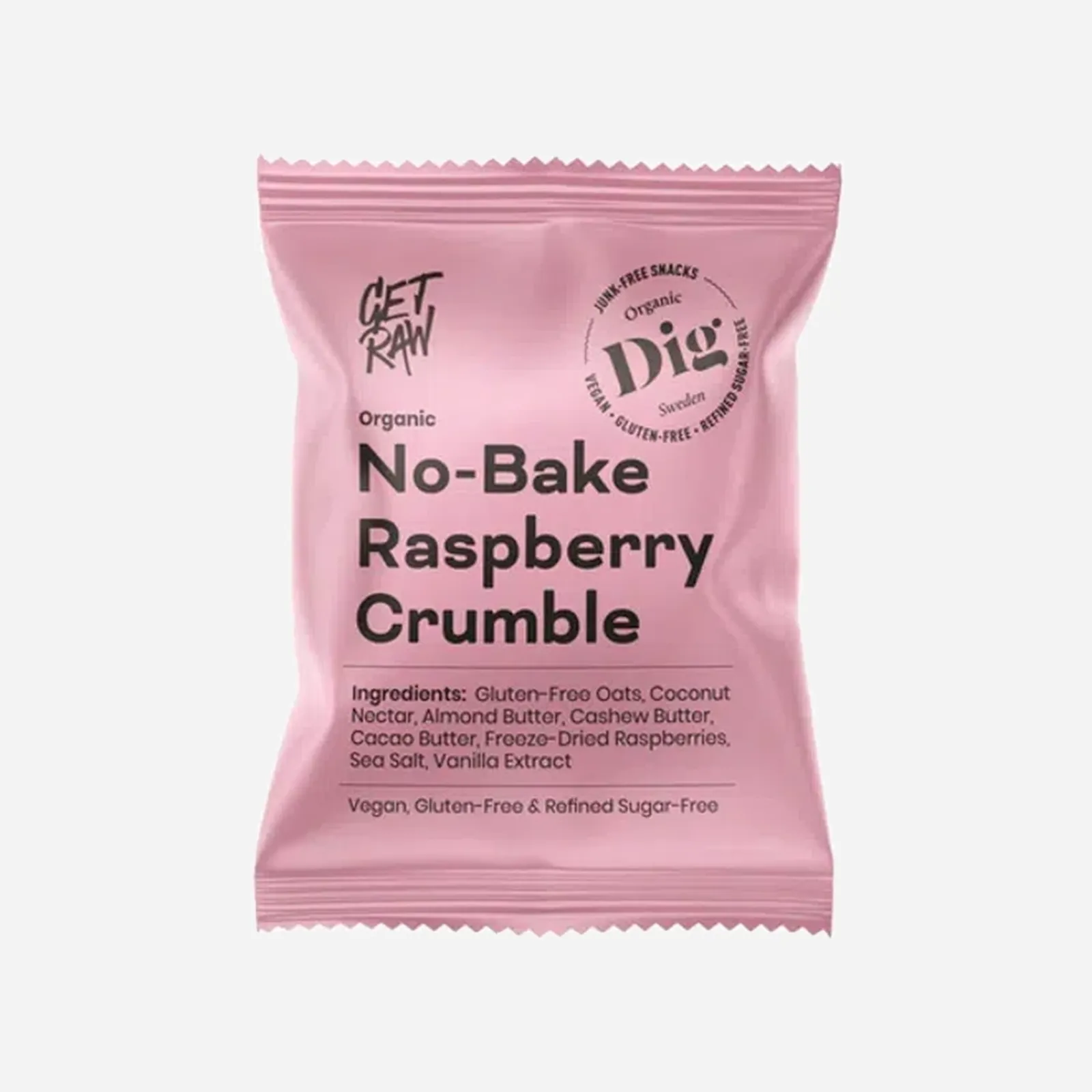 Složení: Bezlepkové ovesné vločky*, kokosový sirup*, mandlové máslo*, kešu máslo*, kakaové máslo*, lyofilizované maliny* 4 %, mořská sůl, vanilkový extrakt*.