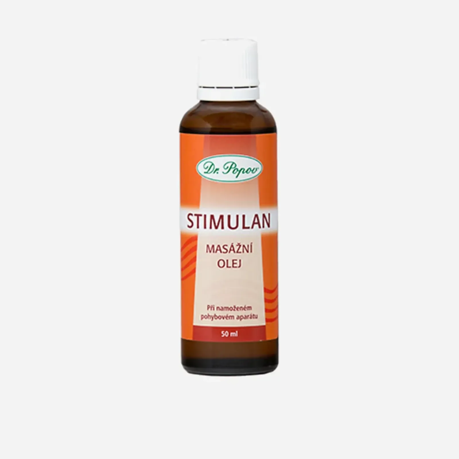 Stimulan je přípravek vhodný k lokální masáži pohybového aparátu (např. při revmatizmu, při akutních bolestech). Díky vyvážené kombinaci esenciálních olejů má silně prohřívací účinek. Snadno se vstřebává do pokožky.