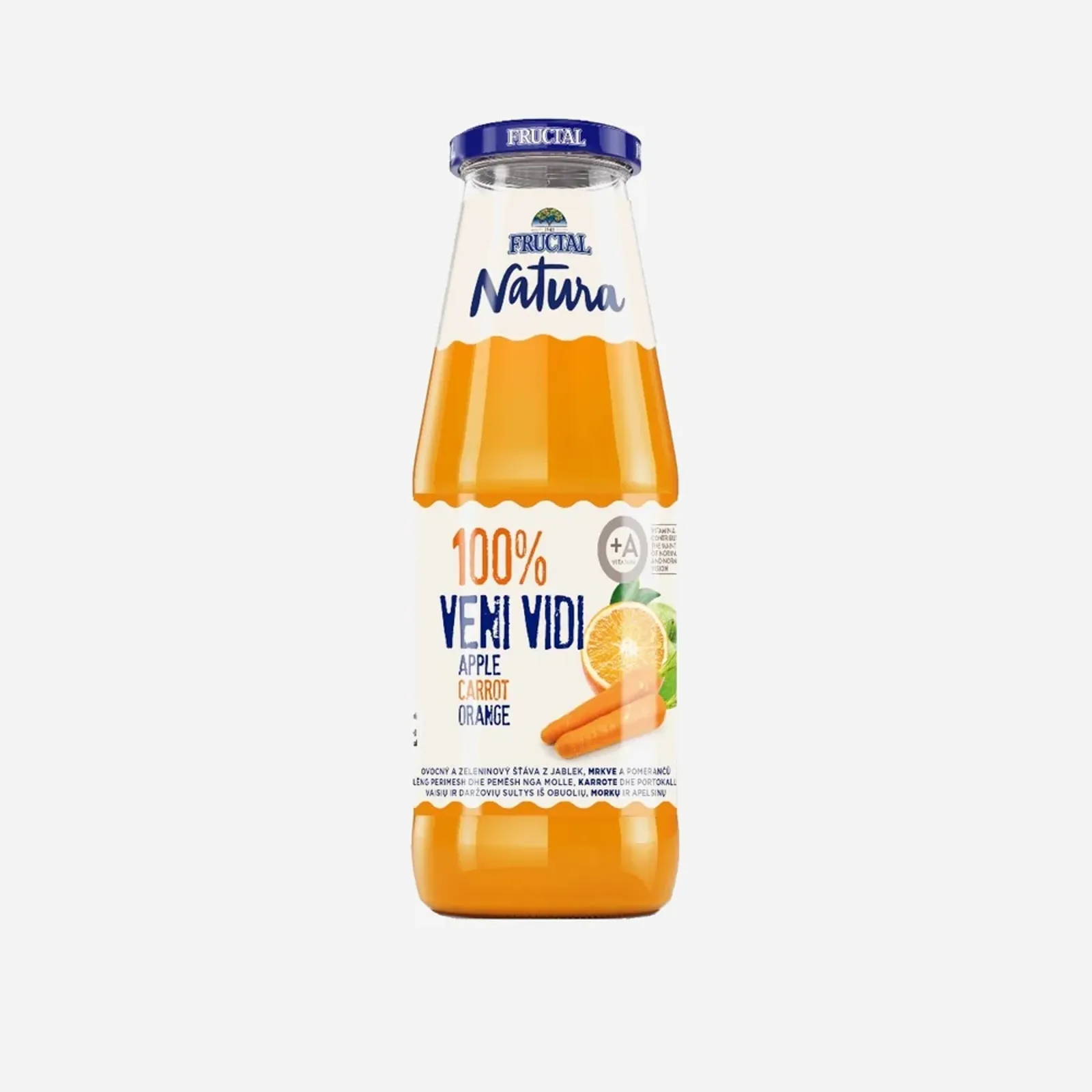 Složení: Jablečná šťáva 66 % z koncentrátu, mrkvová dřeň 31 %, pomerančová šťáva 3 % z koncentrátu, citronová šťáva z koncentrátu, antioxidant: kyselina askorbová.