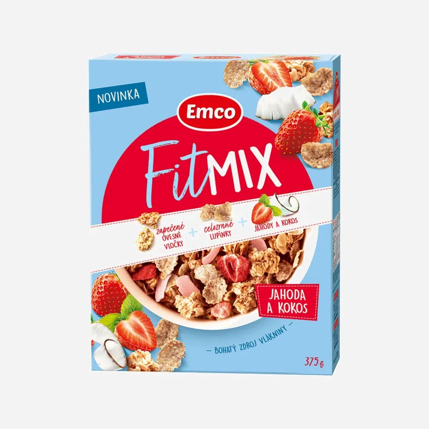 Začněte den plní energie s fitmix cereální snídaní, která je plná vlákniny a podpoří váš zdravý životní styl. Zapečené ovesné vločky z českého ovsa z mlýna v jižních Čechách jsou doplněné křehkými celozrnnými lupínky a křupavou kombinací mrazem sušených jahod a kokosu. Navíc bez přidaných konzervantů, barviv a palmového tuku. Fitmix si k snídani zamiluje celá vaše rodina.