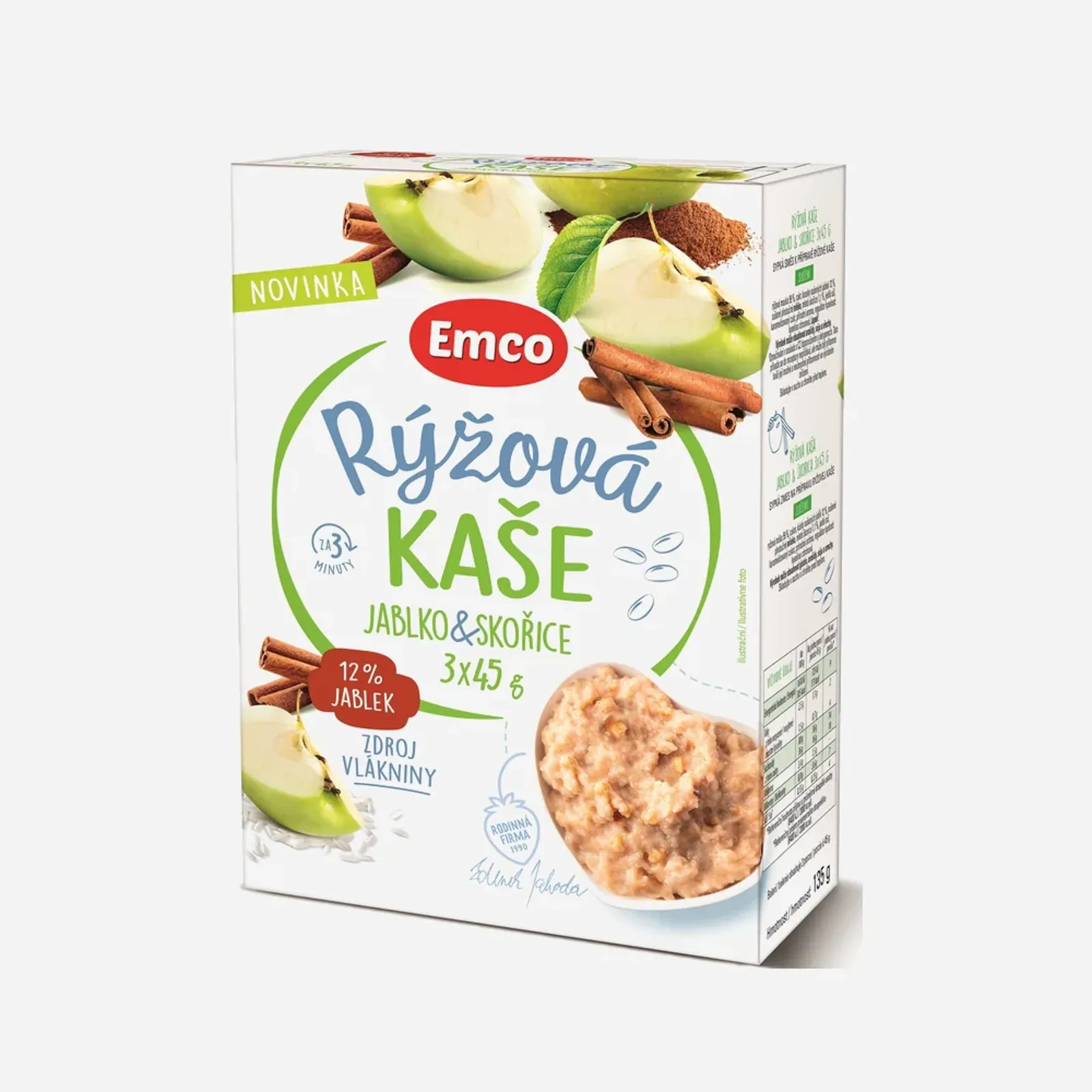 Emco Rýžová kaše s jablky a skořicí 3x45 g, 135 g