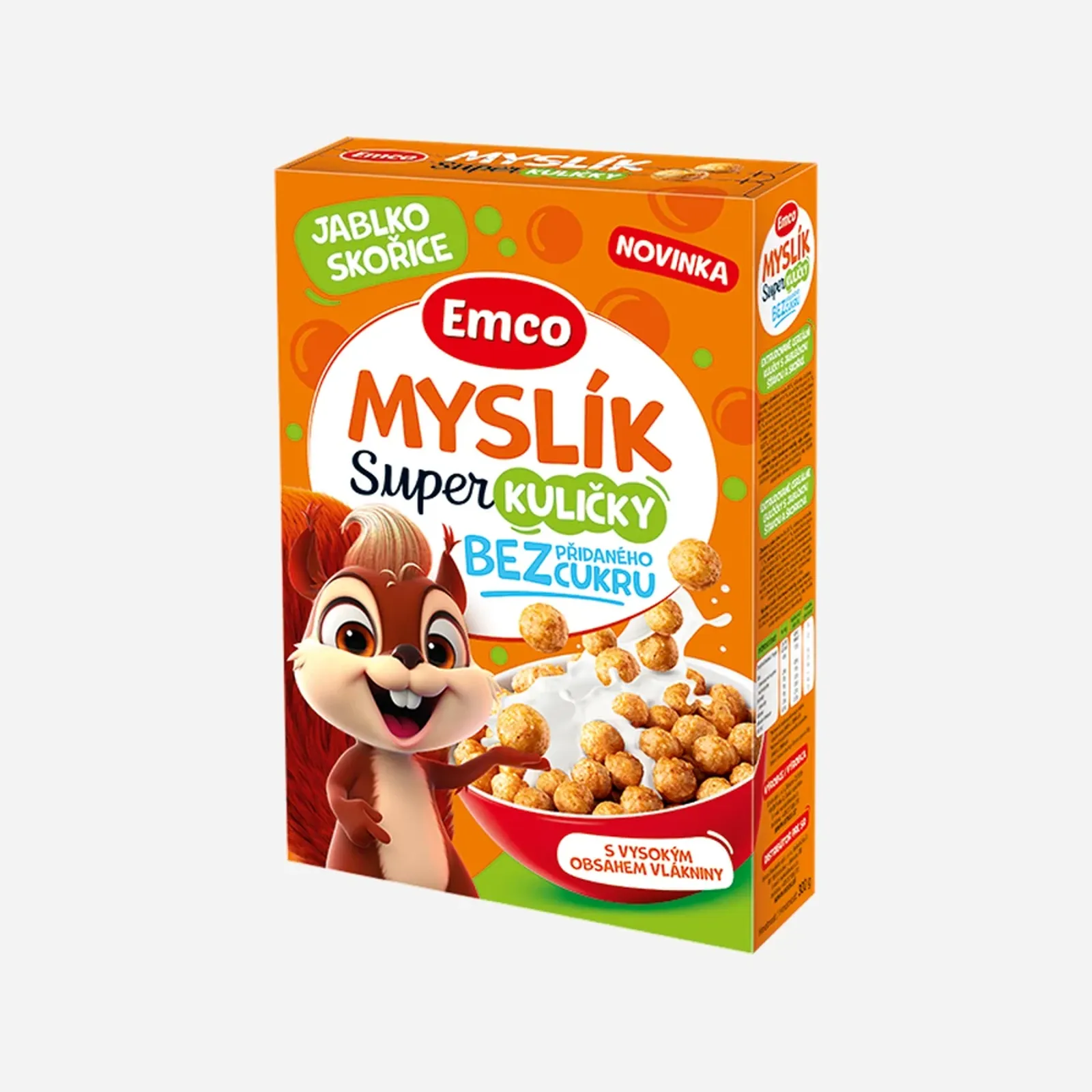 Extrudované cereální kuličky s jablečnou šťávou a skořicí.