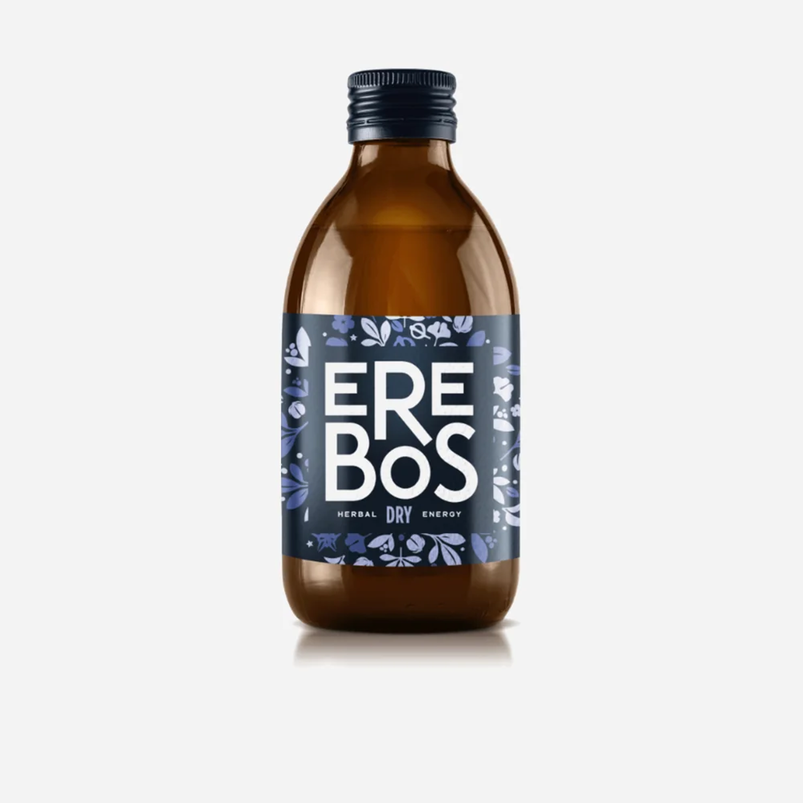 Složení: Výluh ze 7 bylin EREBOS (maté, kola , guarana, rhodiola, mateřídouška, kozinec, maral), esence EREBOS DRY (přírodní aroma, výluh z bylin a koření), vitamín C, antioxidant: kyselina citronová . Neobsahuje konzervanty, barviva ani umělá aromata. Před vypitím důkladně protřepejte. Skladujte v chladu a temnu. Po otevření ihned spotřebujte. Sedimentace bylin je znakem přírodního charakteru nápoje. Nápoj s vysokým obsahem přírodního kofeinu (39 mg/100 ml) – není vhodný pro děti a těhotné nebo kojící ženy. Kofein pouze z bylin. Originální česká receptura.