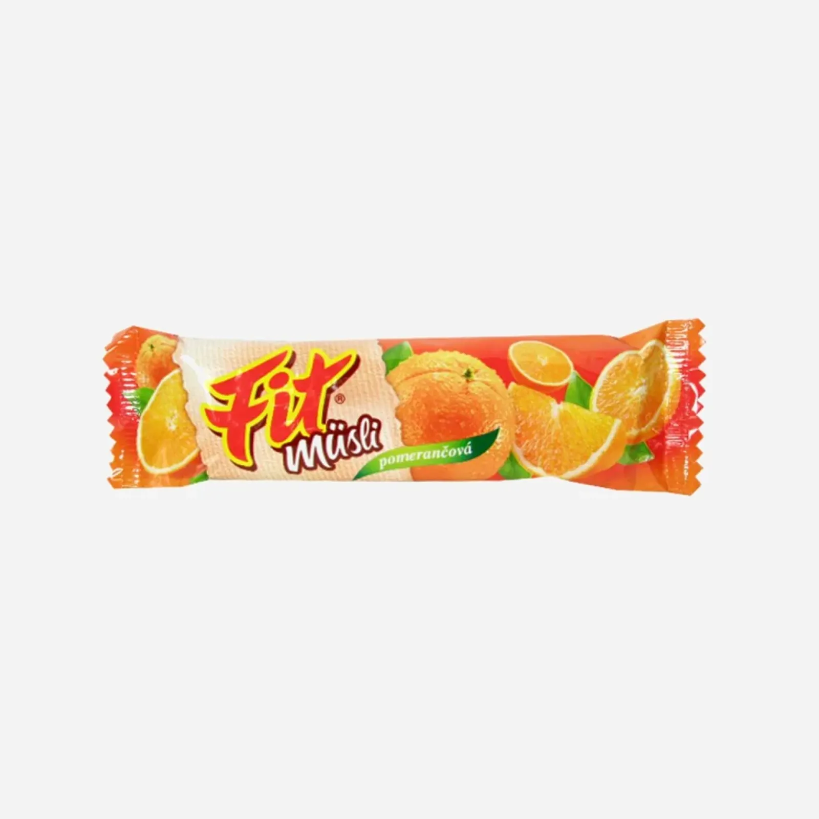 Müsli tyčinka FIT GO je cereální tyčinka s příchutí pomeranče.