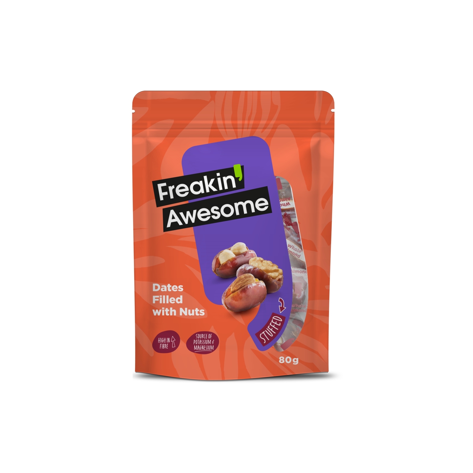 Spojení prémiové datle odrůdy Khalas a výběrového ořechu/mandle (v originálním balení každého jednotlivého plodu) představuje ideální svačinový snack. Ať už do práce, do školy či posilovny.