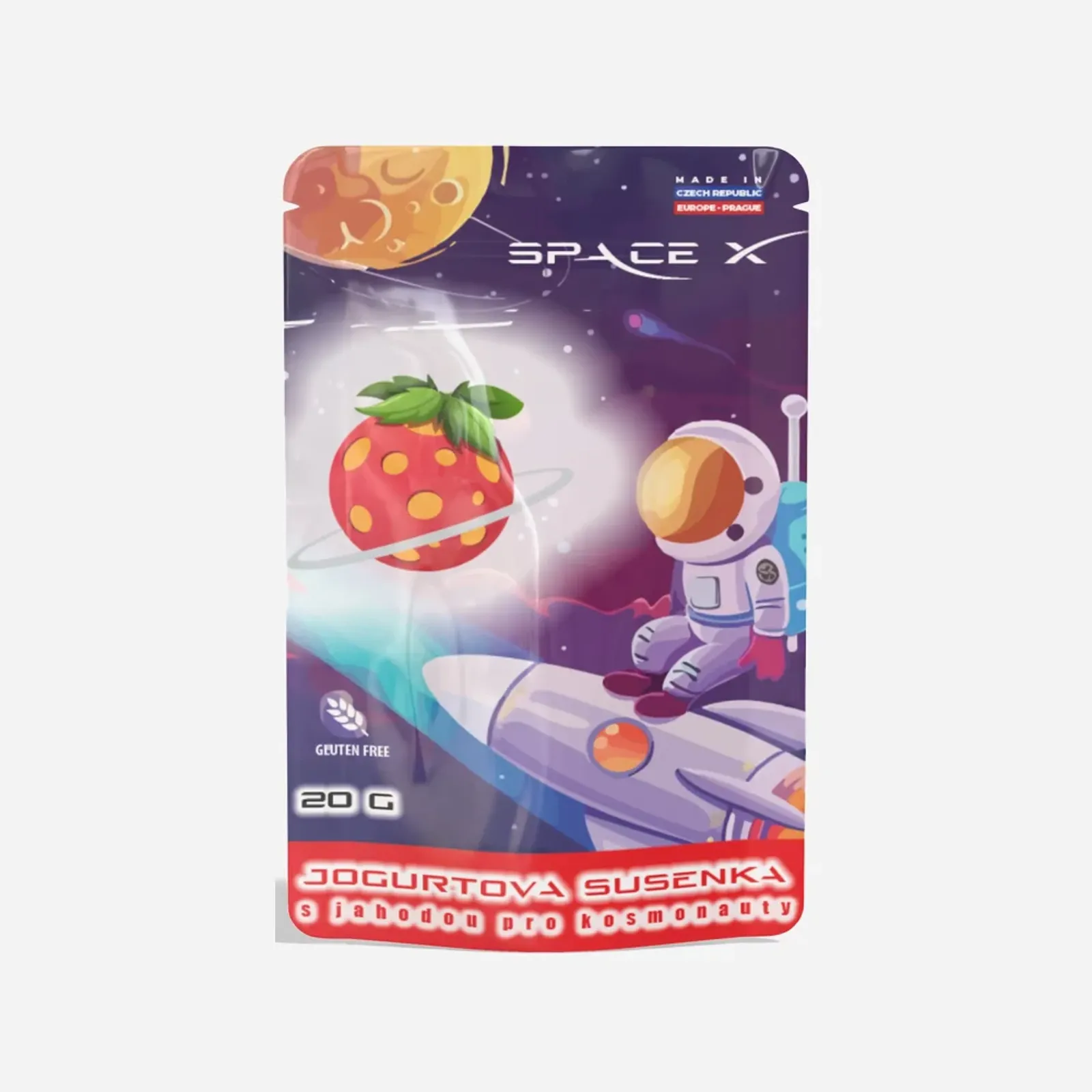 Složení: Lyofilizovaný jogurt (mléko, smetana, sušené mléko, jogurtová a probiotická kultura), cukr, lyofilizovaná jahoda.