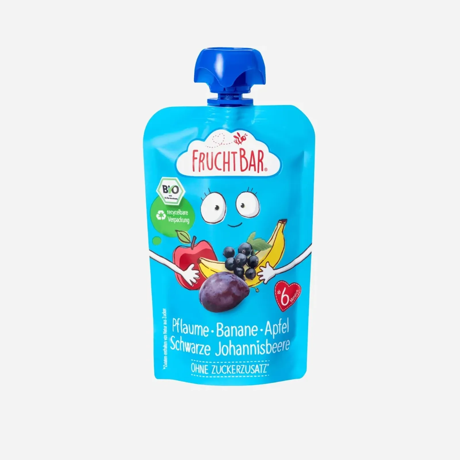 FruchtBar Ovocná kapsička s jablkem, banánem, švestkou a černým rybízem BIO 100 g