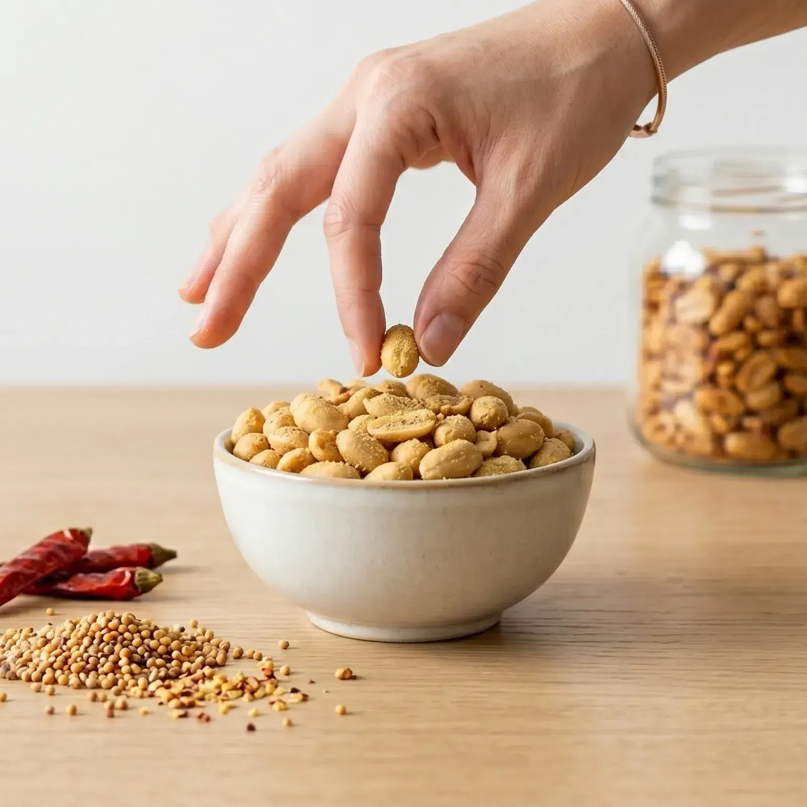 Křupavé arašídy jsou šetrně pražené bez palmového oleje, aby si zachovaly svou přirozenou chuť. Kombinace pálivého chilli a řízné hořčice vytváří intenzivní chuťový profil, který potěší každého milovníka pikantních chutí.