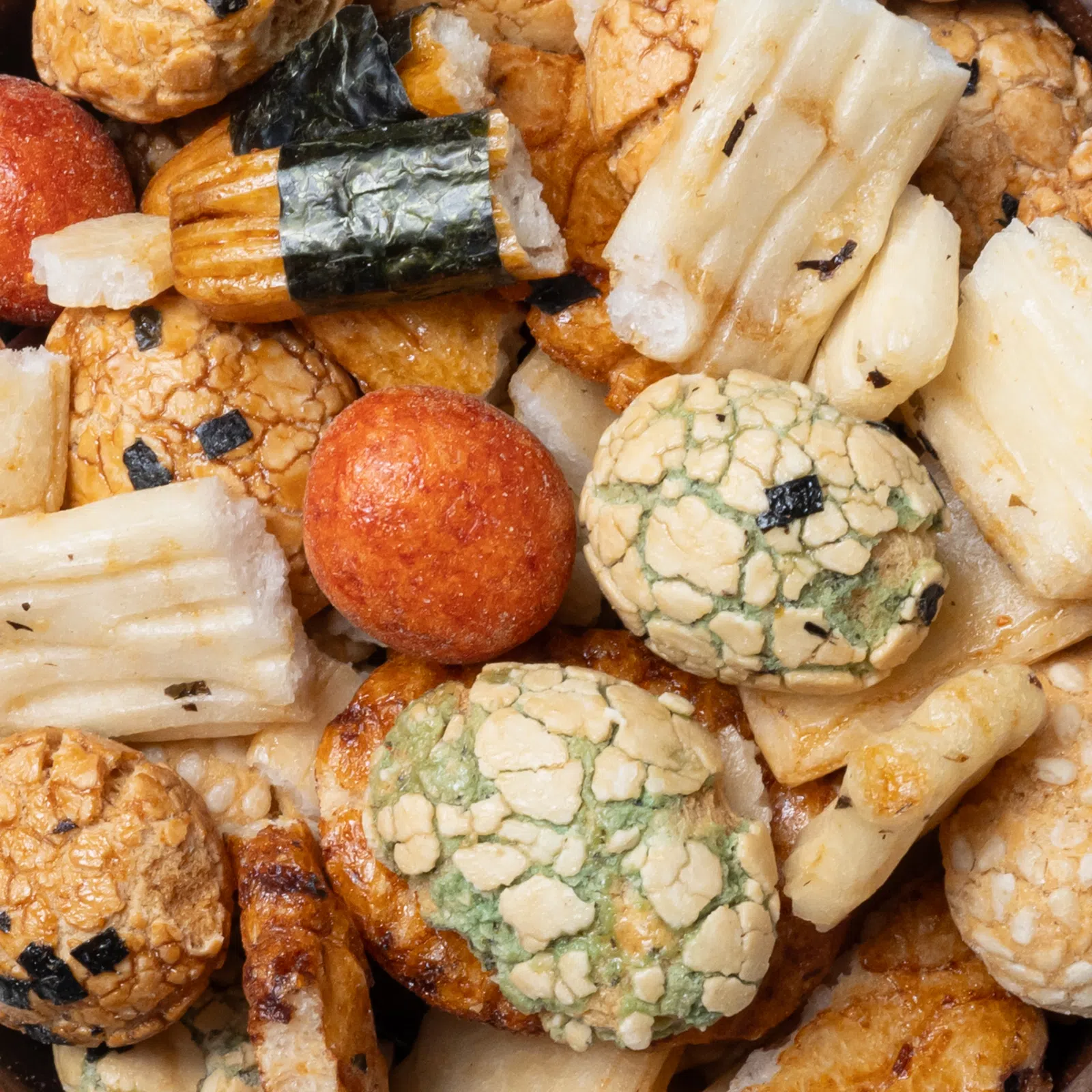 | Složení: | rýže 43 %, modifikovaný kukuřičný škrob, arašídy 12 %, pšeničná mouka, cukr, glukózový sirup, sójová omáčka (sójové boby, voda, pšenice, sůl, fruktózový sirup), maltodextrin, sezamové semínko, kypřící látka: E503; sůl, barviva: karamel, paprikový extrakt, E141; mořské řasy 0,17 %, modifikovaný tapiokový škrob, bramborový škrob, sójová omáčka v prášku (voda, maltodextrin, sójové boby, pšenice, sůl), chilli paprika, kvasnicový extrakt. |