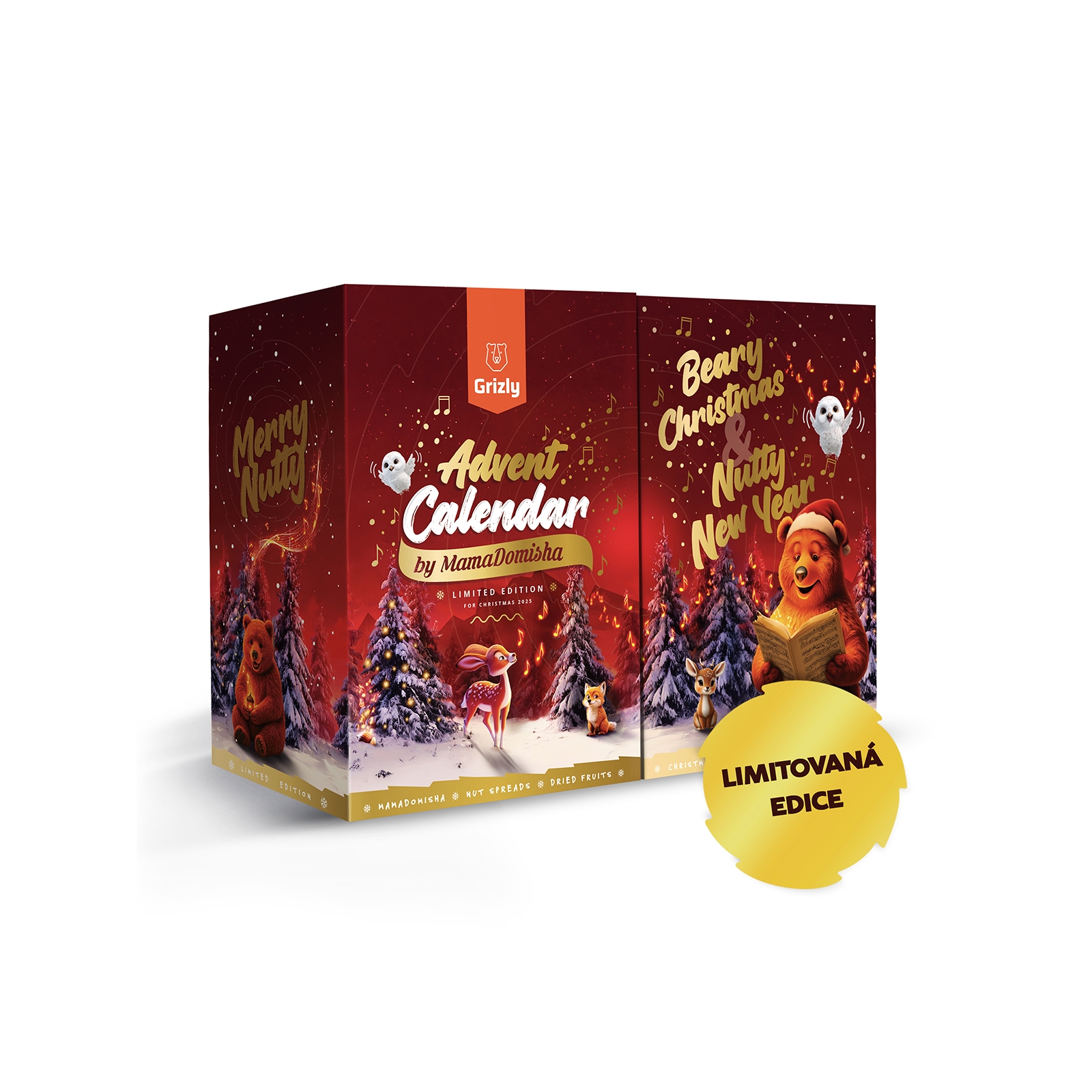 Tak jste se dočkali! Legendami opředený medvědí adventní kalendář je na světě. Lepší, hezčí, chutnější, barevnější, hravější a jako vždy naplněný až po okraj dobrotami z dílny Grizly a MamaDomisha. Nalaďte se společně s ním, medvídkem Grizly a zvířátky z kouzelného lesa na vánoční notu.