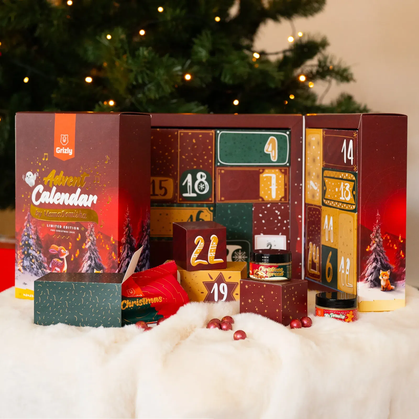 Už je to tady! Legendami opředený medvědí adventní kalendář je na světě. Lepší, hezčí, chutnější, barevnější, hravější a jako vždy naplněný až po okraj dobrotami z dílny Grizly a MamaDomisha. Teď už nám jen zbývá vám tu naši vánoční parádu představit v celé své kráse.