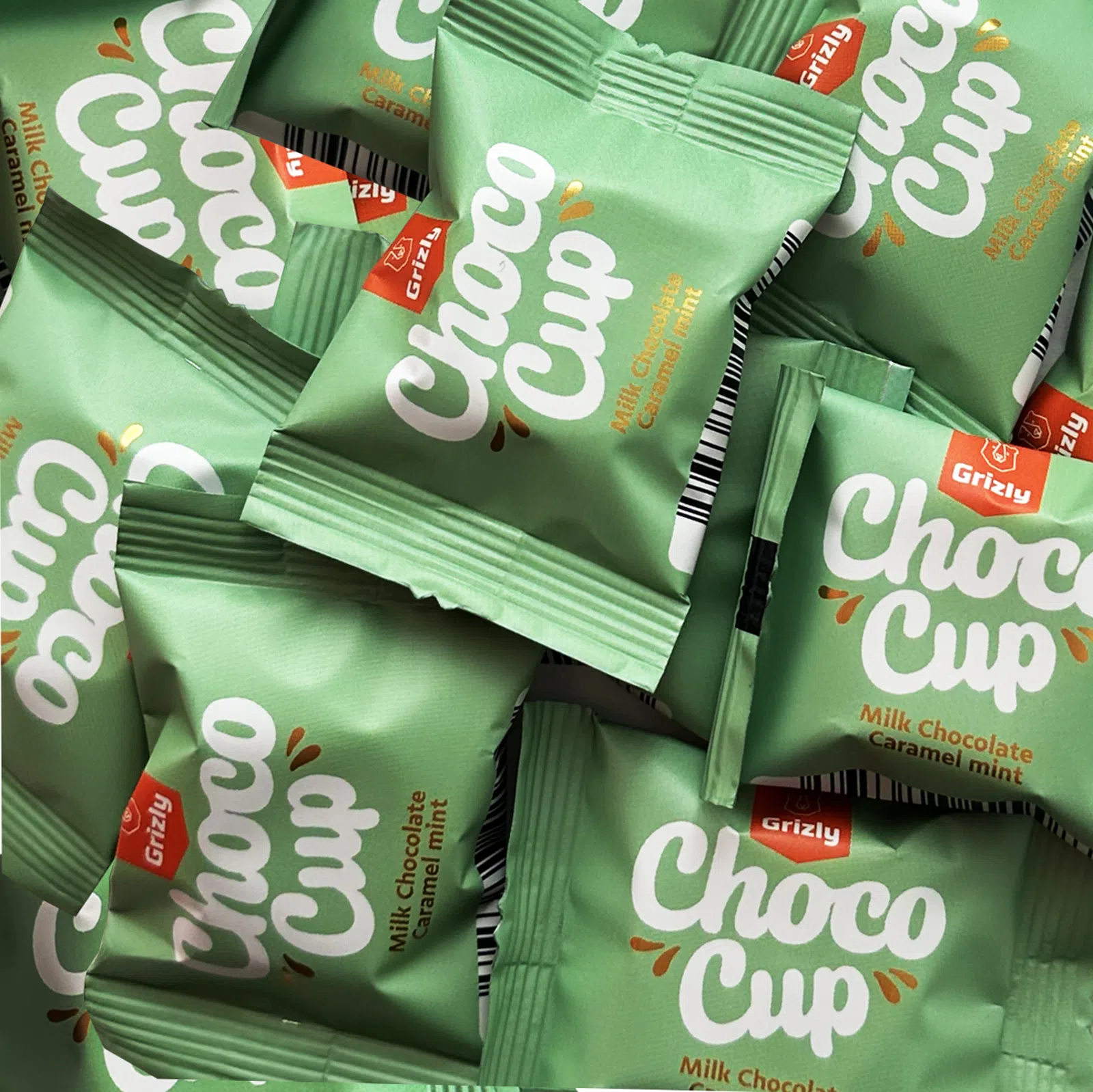GRIZLY Choco Cups mléčná čokoláda, karamel & máta, 120 g