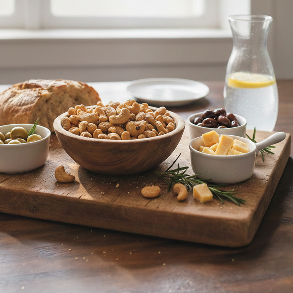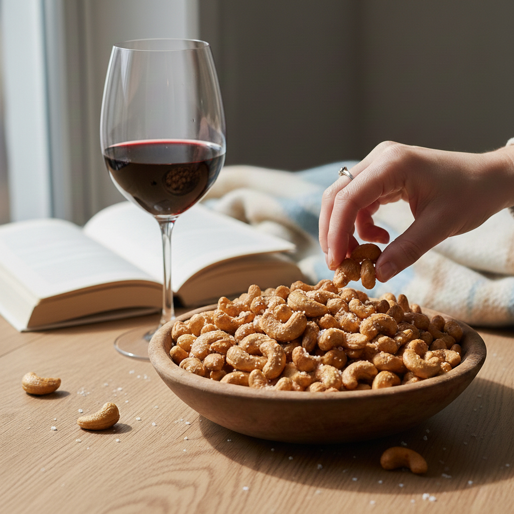 Pražené kešu ochucené špetkou soli jsou naprosto vynikající. Skvělé jen tak k vínu nebo k dochucení salátů.