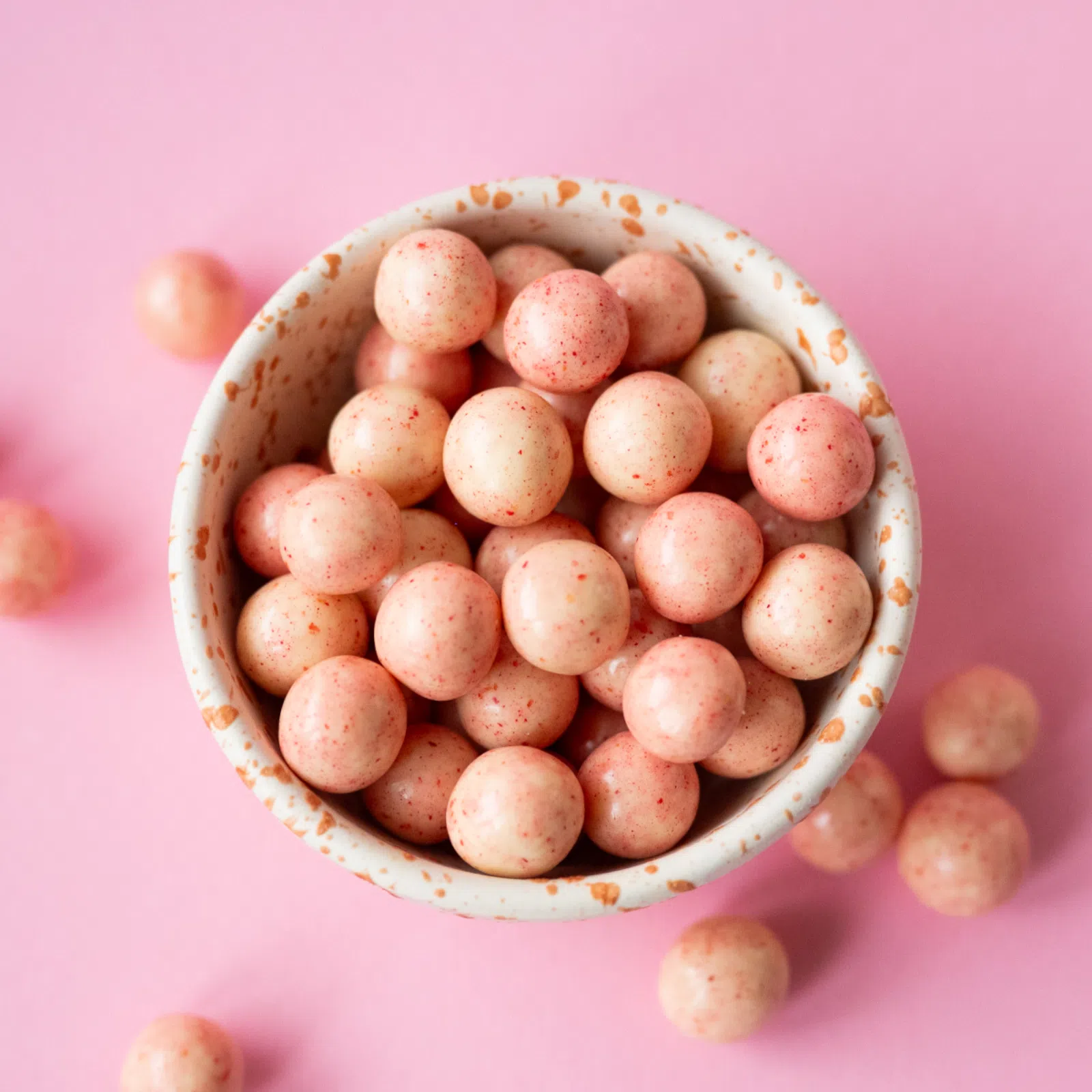 Velikonoční mlsání může mít mnoho podob. Od čokoládových vajíček přes figurky zajíčků až po tyhle křupavé rýžové kuličky obalené do jogurtu a ochucené malinami.