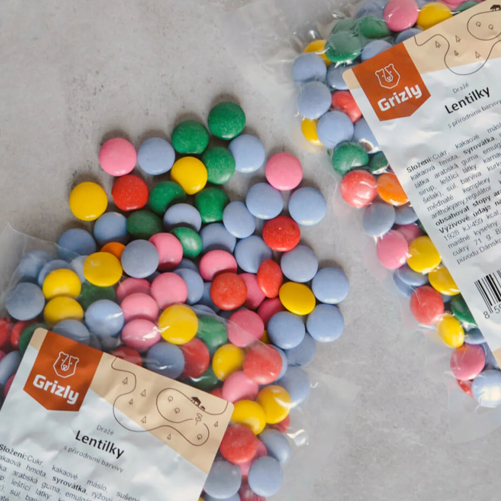 Oblíbené lentilky ve zdravější variantě? U nás v GRIZLY žádný problém, barevnosti jsme docílili za pomoci přírodních barviv, žádná chemie.