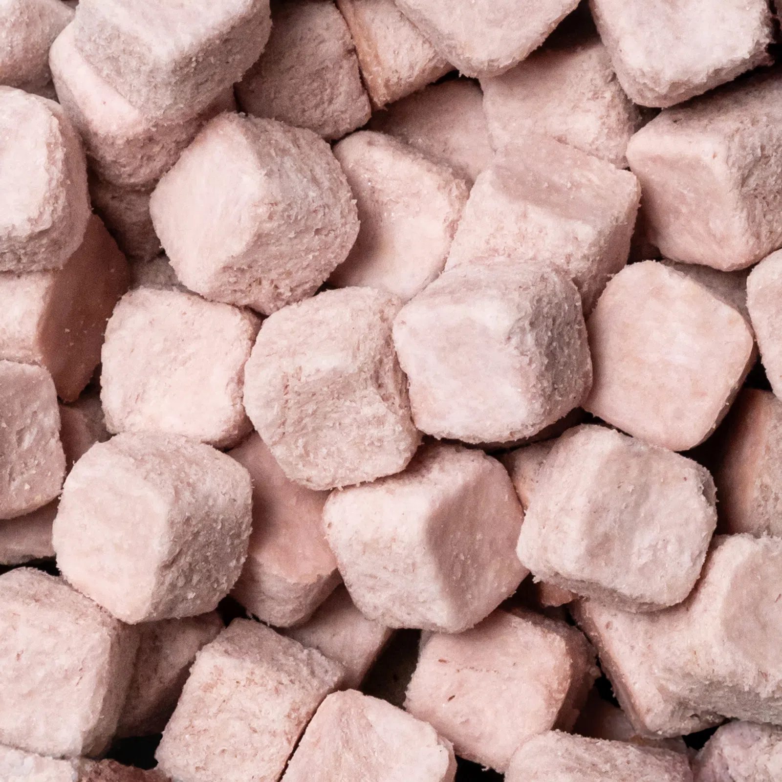 Tuhle pecku jen tak někde neochutnáte! Mrazem sušené malinké čtverečky obsahují pouze kokosové mléko, jablko a třešeň, tudíž spolehlivě zaženou všechny chutě na sladké. A přitom neobsahují žádný přidaný cukr.