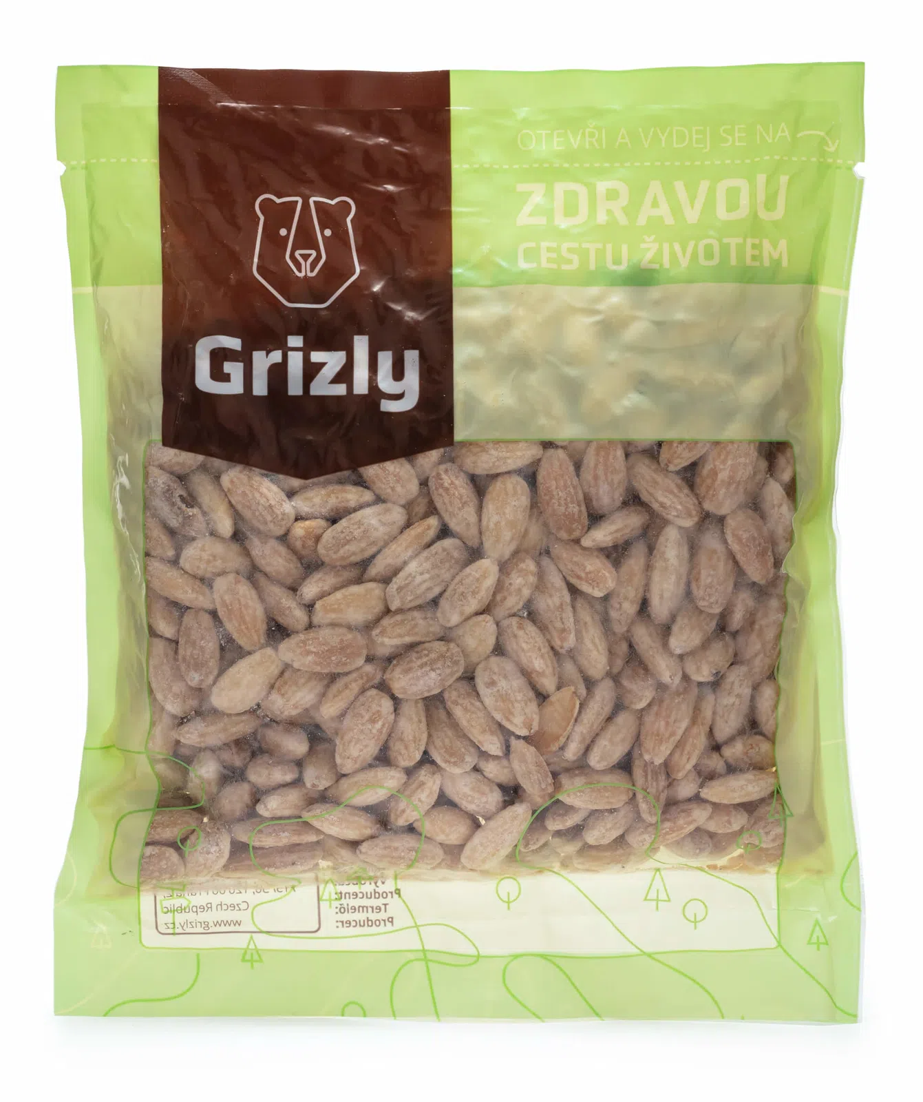 - Složení: Jádra mandlí 98 %, sůl 1,5 %, řepkový olej 0,5 %