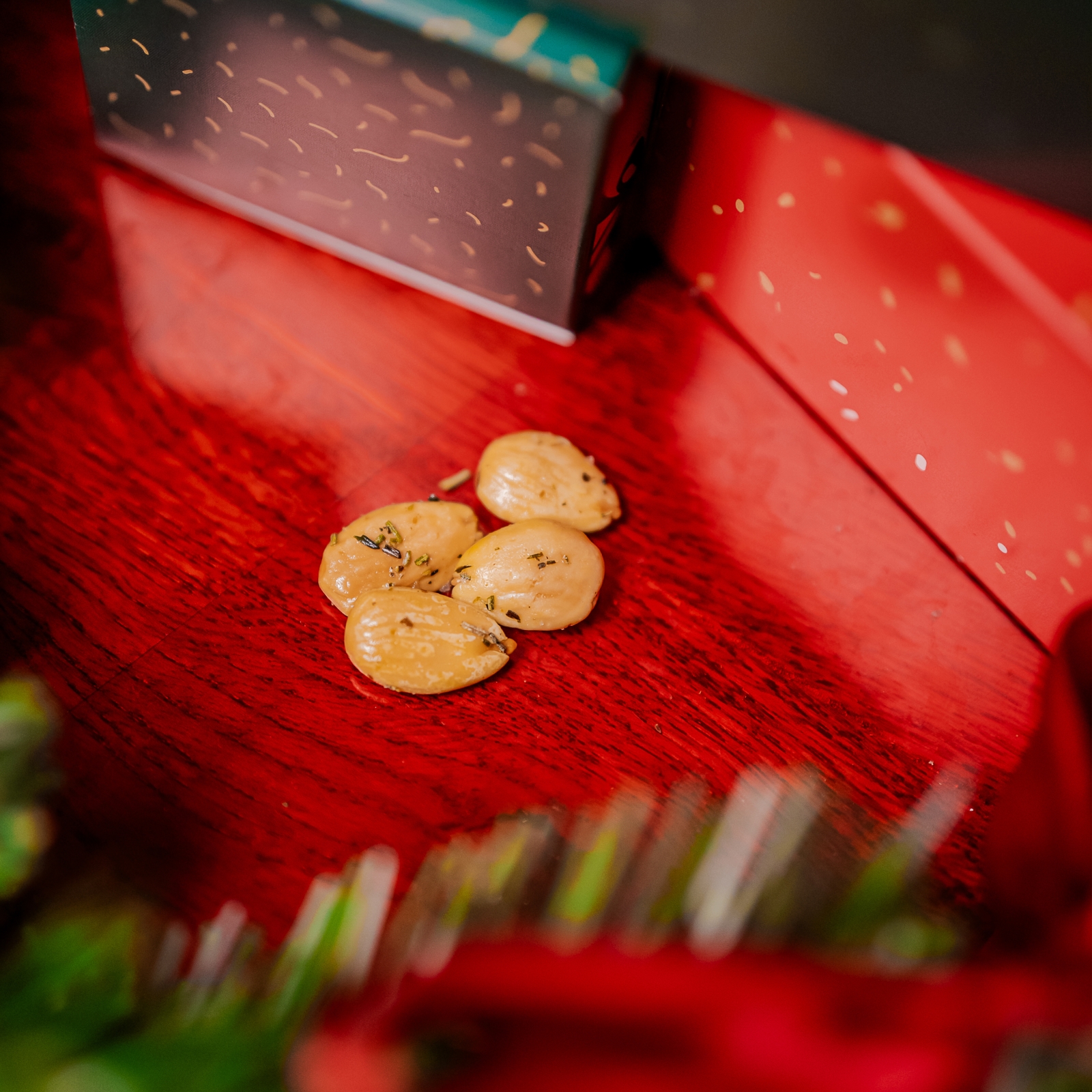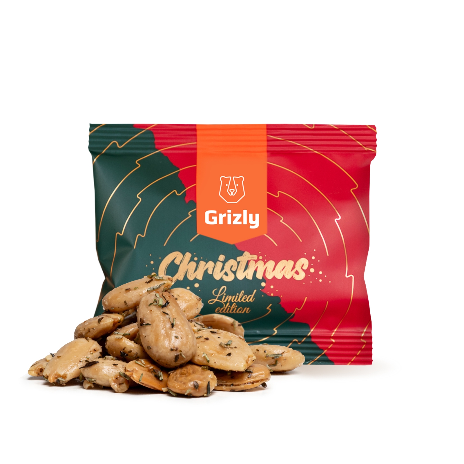 Křupavé bylinkové mandle zabalené v nádherném balení s vánočním motivem rozdají hodně radosti, a to nejen pod stromečkem.