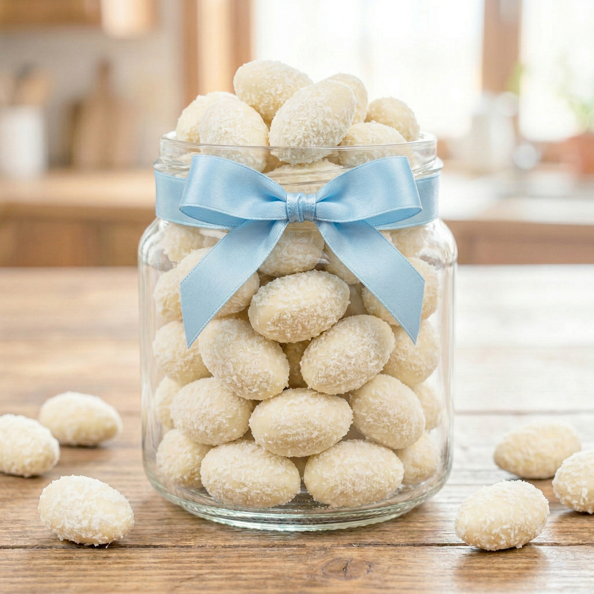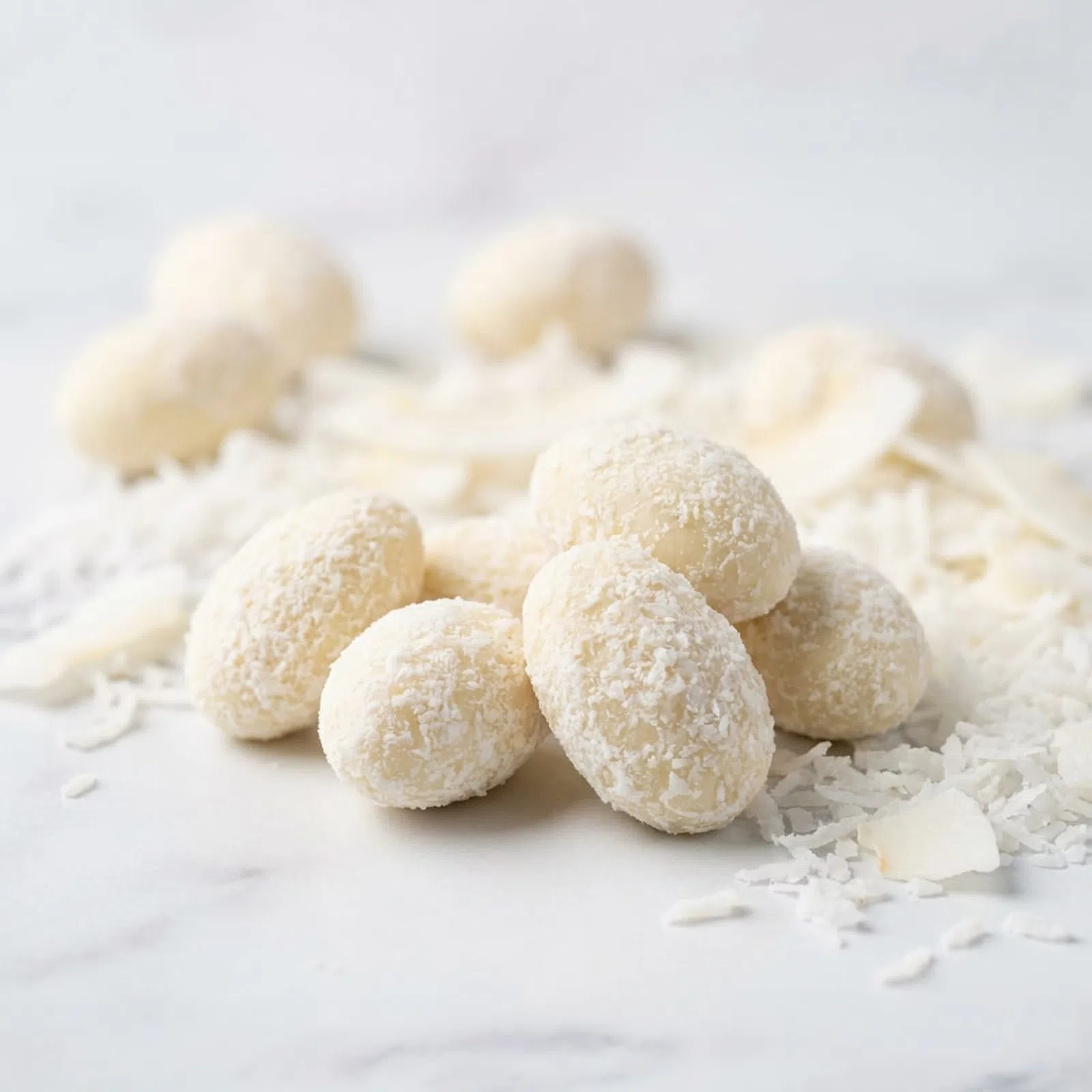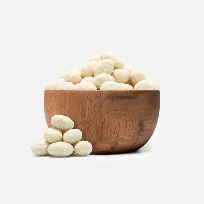 Pečlivě vybrané mandle obalené v prvotřídní bílé čokoládě a křupavém kokosu. Každé sousto tak přináší dokonale vyváženou kombinaci intenzivní chuti a vytříbené sladkosti.
