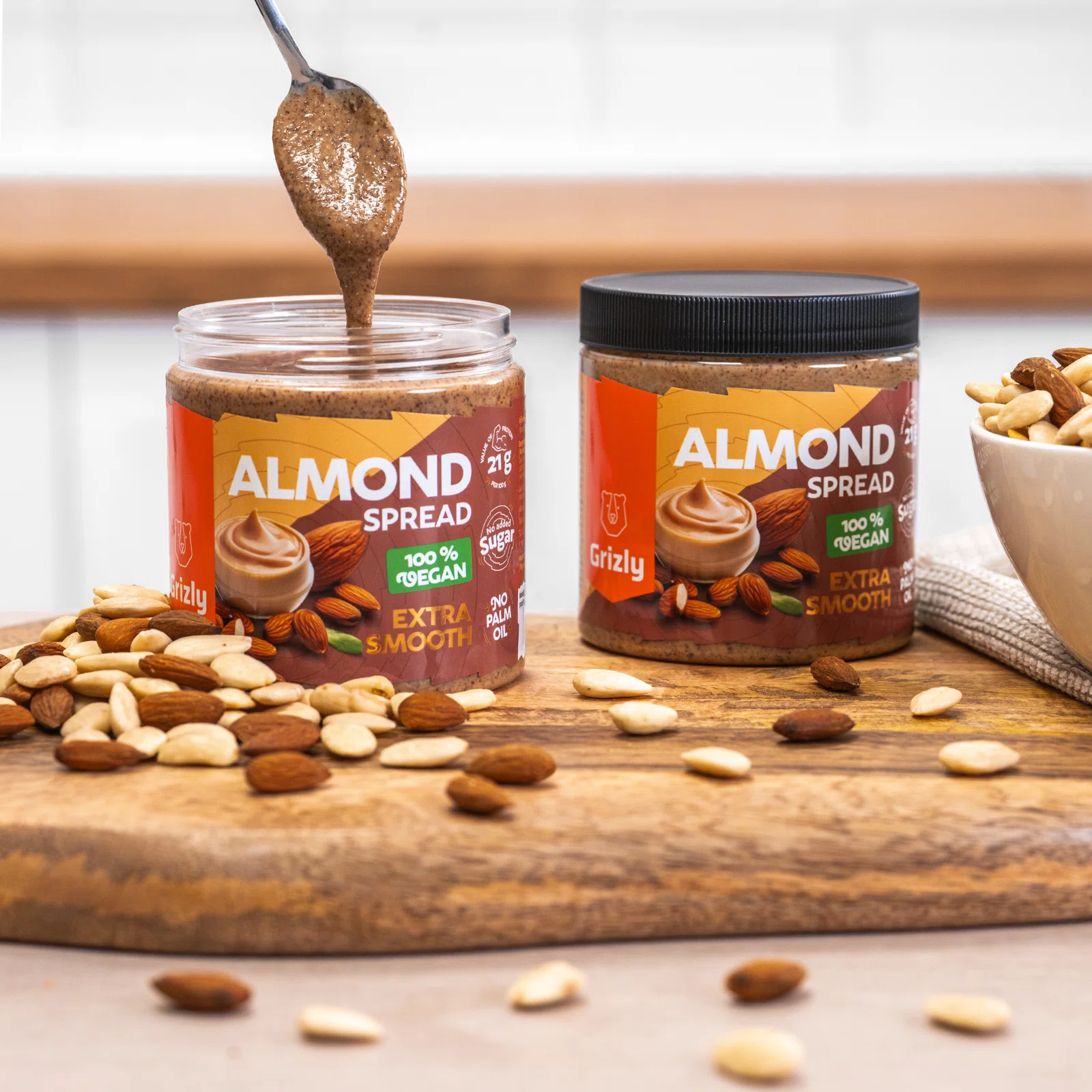 …ořechová másla a krémy vyrábíme každý týden v malých sériích? Můžeme tak zaručit výjimečnou kvalitu u každého kusu. GRIZLY mandlový krém navíc odpovídá požadavkům na zdravé mandlové máslo, protože k jeho výrobě se používají pouze mandle. Žádné další přidané cukry, oleje nebo aditiva v něm nenajdete.