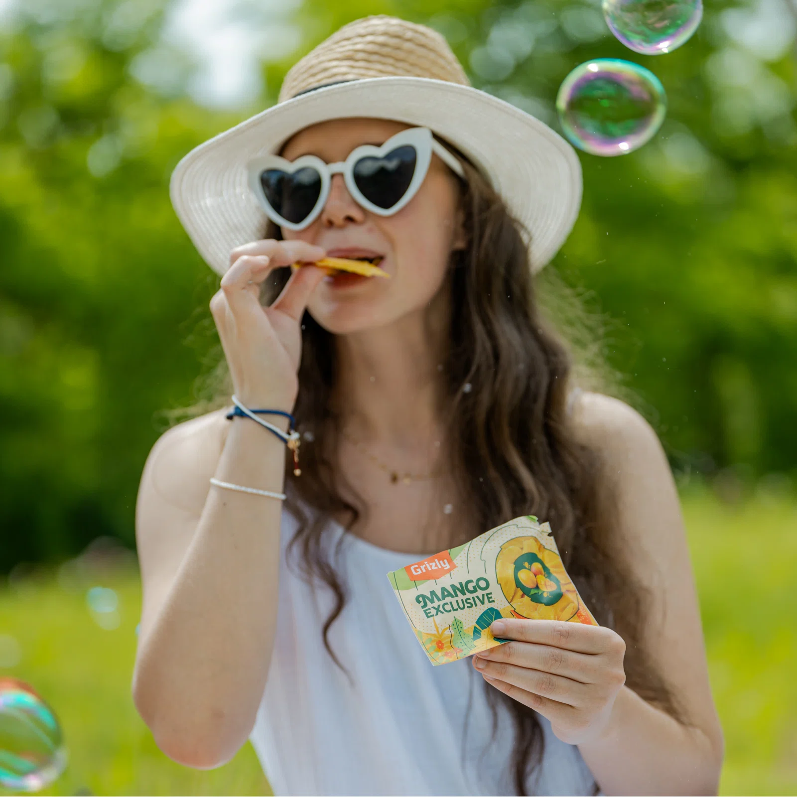 Jakmile si dáte jeden plátek, rozhodně nezůstanete jen u něj. GRIZLY Mango exclusive je opravdovým chuťovým zážitkem.