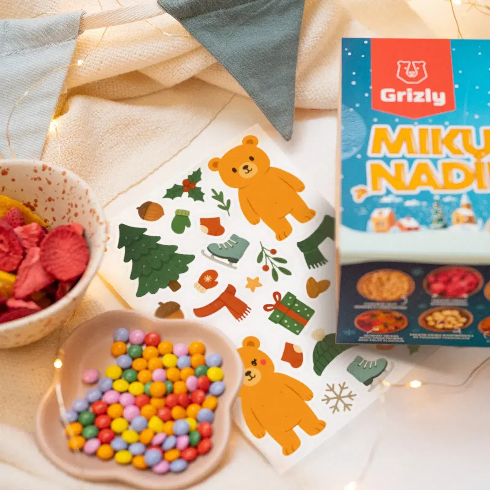 Sladké dobroty ovšem nejsou v boxu osamoceny. Na děti, ale klidně i dospělé, čeká po jeho otevření překvapení - arch nálepek s veselými medvědími motivy! Můžete si je společně s dětmi ustrojit podle svého vkusu a vypravit se s nimi na pomyslnou procházku zimní krajinou.