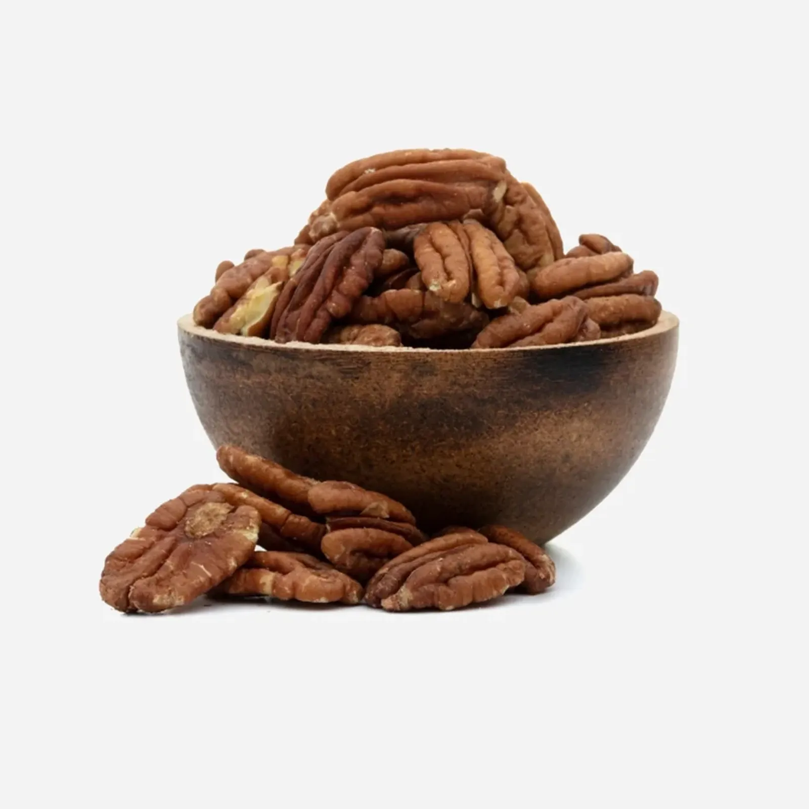 Pekanový ořech je vzhledově podobný vlašskému, je však podlouhlý, jemnější a sladší. Skořápka plodu je hladká, různých barev přes odstíny žluté, hnědé a oranžové. Jedlá jádra jsou velice chutná, ale jak už u ořechů bývá, také tučná. Naštěstí se jedná a tuky zdravé.