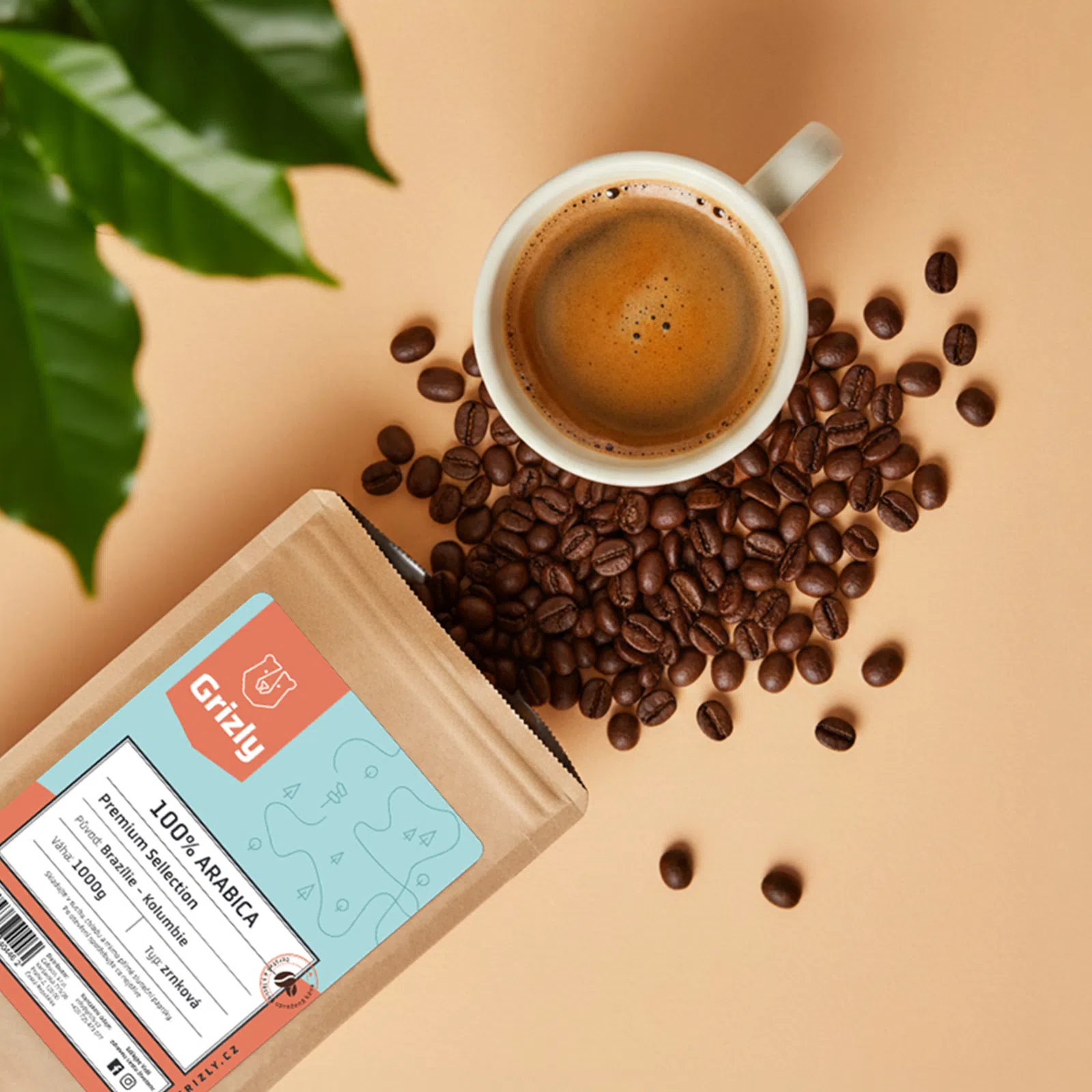 GRIZLY Pražená zrnková káva 100% Arabica Premium Selection, 1000 g
