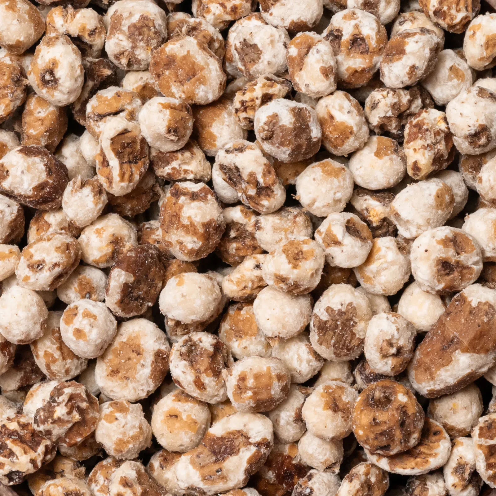 Technicky vzato tygří ořechy nejsou ořechy, ale hlízy rostliny známé pod jménem Šáchor jedlý. Ten pochází ze Středomoří a Afriky, kde se pěstuje už po tisíce let. Mimochodem tygří ořechy znali už ve starověkém Egyptě, kde patřily mezi oblíbené a vysoce ceněné potraviny. Podobně budete jistě cenit i naše tygří oříšky, protože jsou oloupané a oproti klasickým tygřím ořechům jsou tím pádem měkčí. Vynikají nasládlou chutí, která může připomínat kokos nebo mandle. Však se také tygřím oříškům někdy přezdívá zemní mandle. Zajímavostí je, že si na nich mohou pochutnat i ti z vás, které trápí alergie na ořechy.