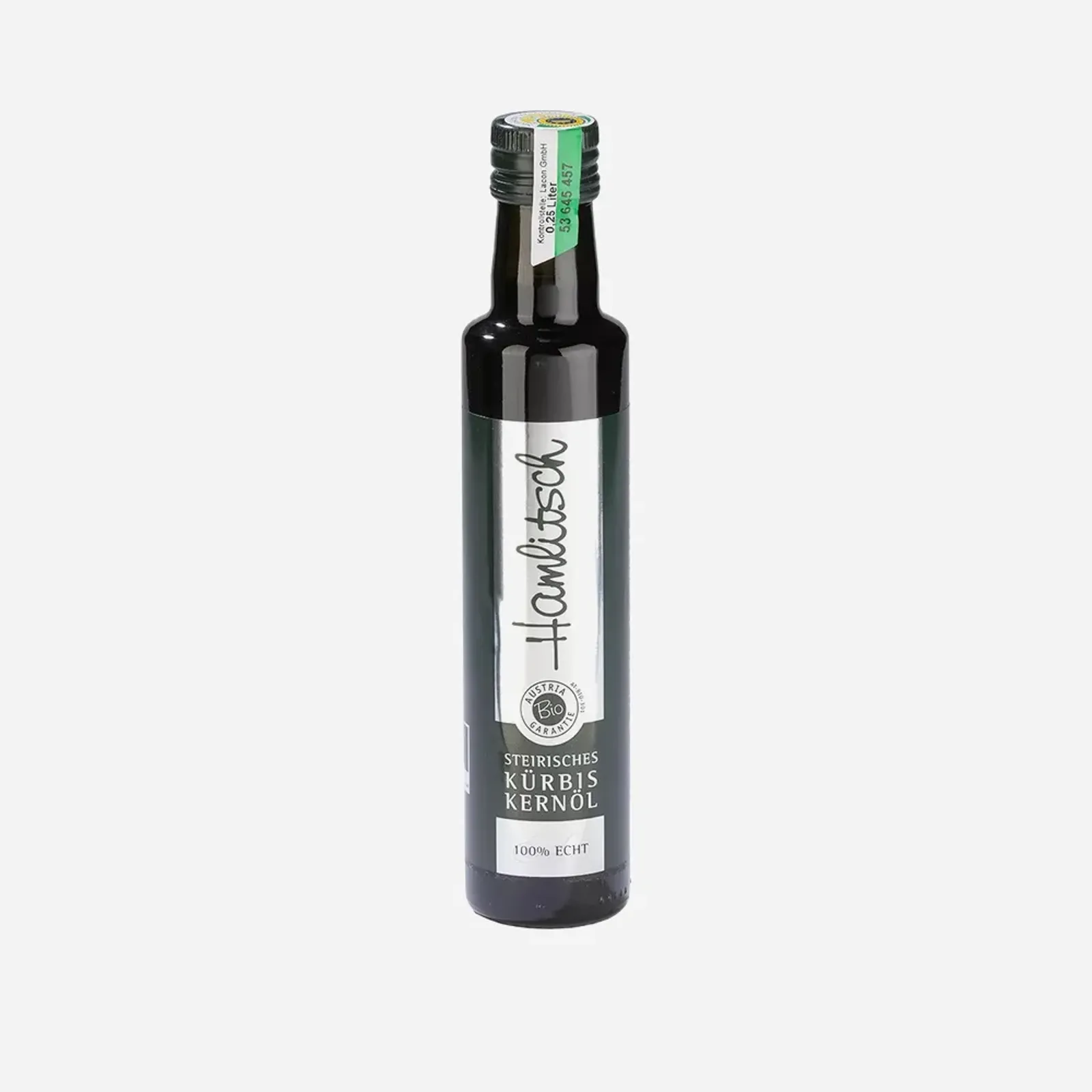 Štýrský dýňový olej je tradiční pochutinou, lisovanou tradičním způsobem na místě z lokálních semínek konkrétní odrůdy tykve.