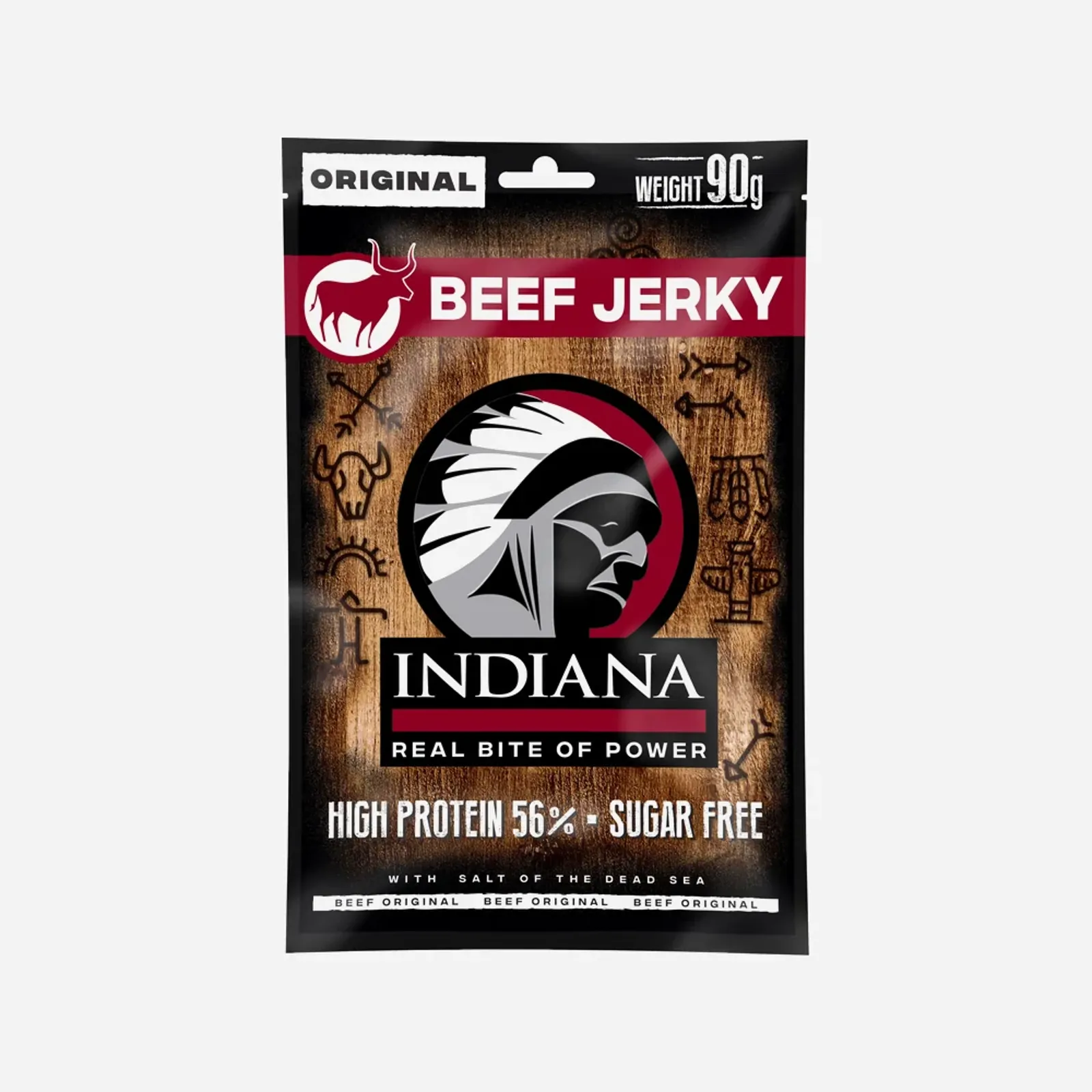 Indiana Jerky Hovězí originál je originální receptura s nezaměnitelnou evropskou slanou příchutí masa.