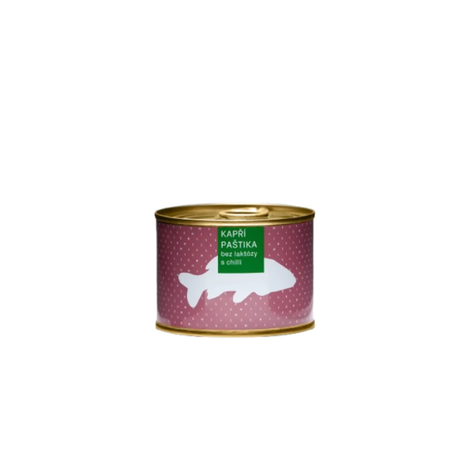 Lahodná paštika z vyuzeného kapřího masa s jemnou chutí bezlaktózové smetany, špetky soli a čerstvého pepře. Díky přidání chilli získala příjemnou pikantnost, která potěší každého příznivce ostřejších delikates. Bude chutnat nejen milovníkům ryb, ale i těm, co dávají přednost jinému masu. Výborná ke snídani nebo svačině, jako lehký oběd, rychlá večeře nebo na piknik a na cesty. Český výrobek z rodinné farmy. Kapří paštika v letošním roce získala již podruhé prestižní cenu Red Dot Award, tentokrát za svou designovou podobu a vizualitu celé značky.