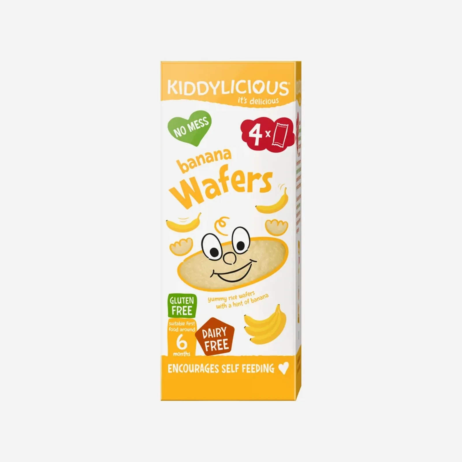 Tyto oceňované oplatky jsou jemně ochuceny banánem. Každá oplatka má takovou velikost, aby ji miminka dokázala svýma drobnýma ručkama držet a nedrobit, což z nich dělá dokonalou svačinku pro nejmenší. Mají speciální lehkou texturu, která se jemně rozpouští v ústech. Oplatky Kiddylicious jsou ideálním prvním pokrmem, jelikož se na nich vaše miminko naučí žvýkat, polykat a samo se krmit.