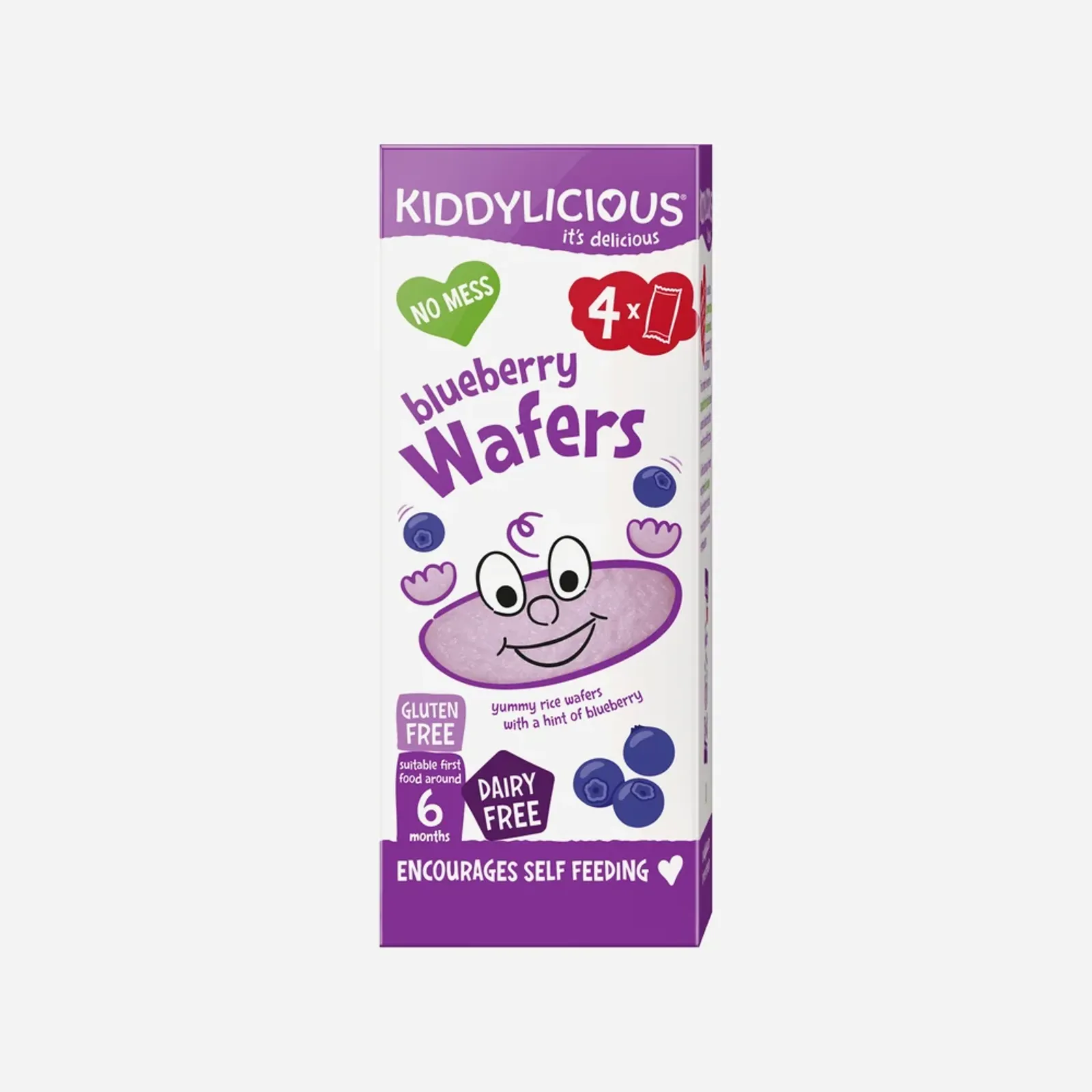 Tyto oceňované oplatky jsou jemně ochuceny borůvkou. Každá oplatka má takovou velikost, aby ji miminka dokázala svýma drobnýma ručkama držet a nedrobit, což z nich dělá dokonalou svačinku pro nejmenší. Mají speciální lehkou texturu, která se jemně rozpouští v ústech. Oplatky Kiddylicious jsou ideálním prvním pokrmem, jelikož se na nich vaše miminko naučí žvýkat, polykat a samo se krmit.