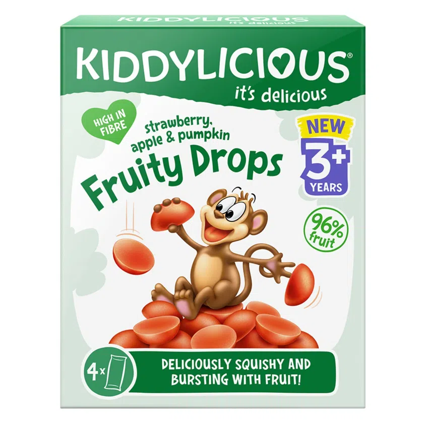 Ovocné želé bonbónky Kiddylicious jsou vyrobeny z 95 % z ovoce, což z nich dělá svačinku plnou vlákniny. Vhodné od 3 let.