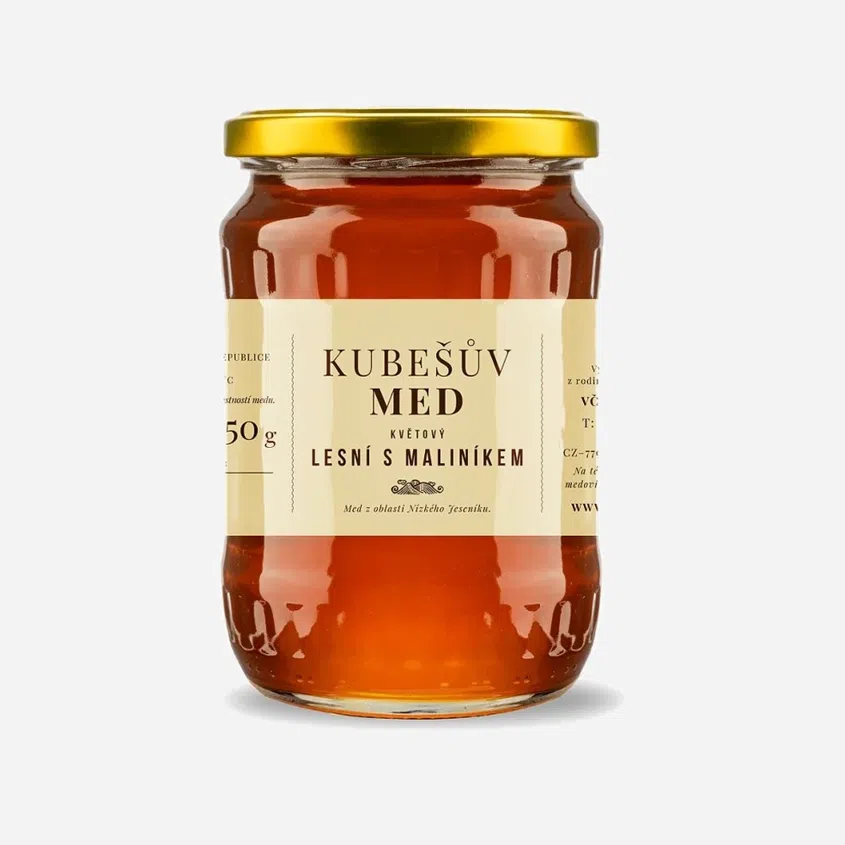 Kubešův med Med květový lesní s maliníkem, 750 g