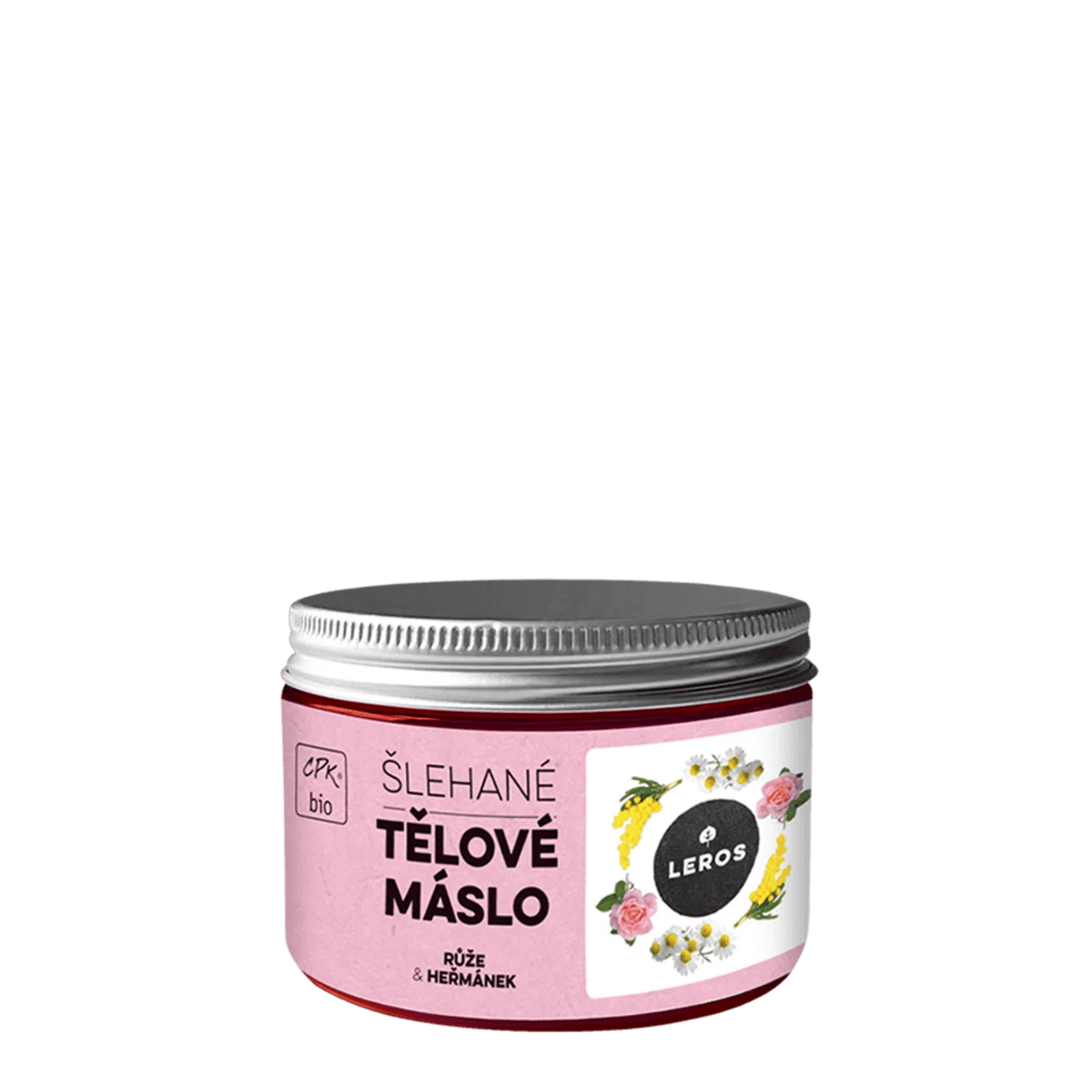 LEROS, s.r.o. Šlehané tělové máslo růže a heřmánek, 150 ml