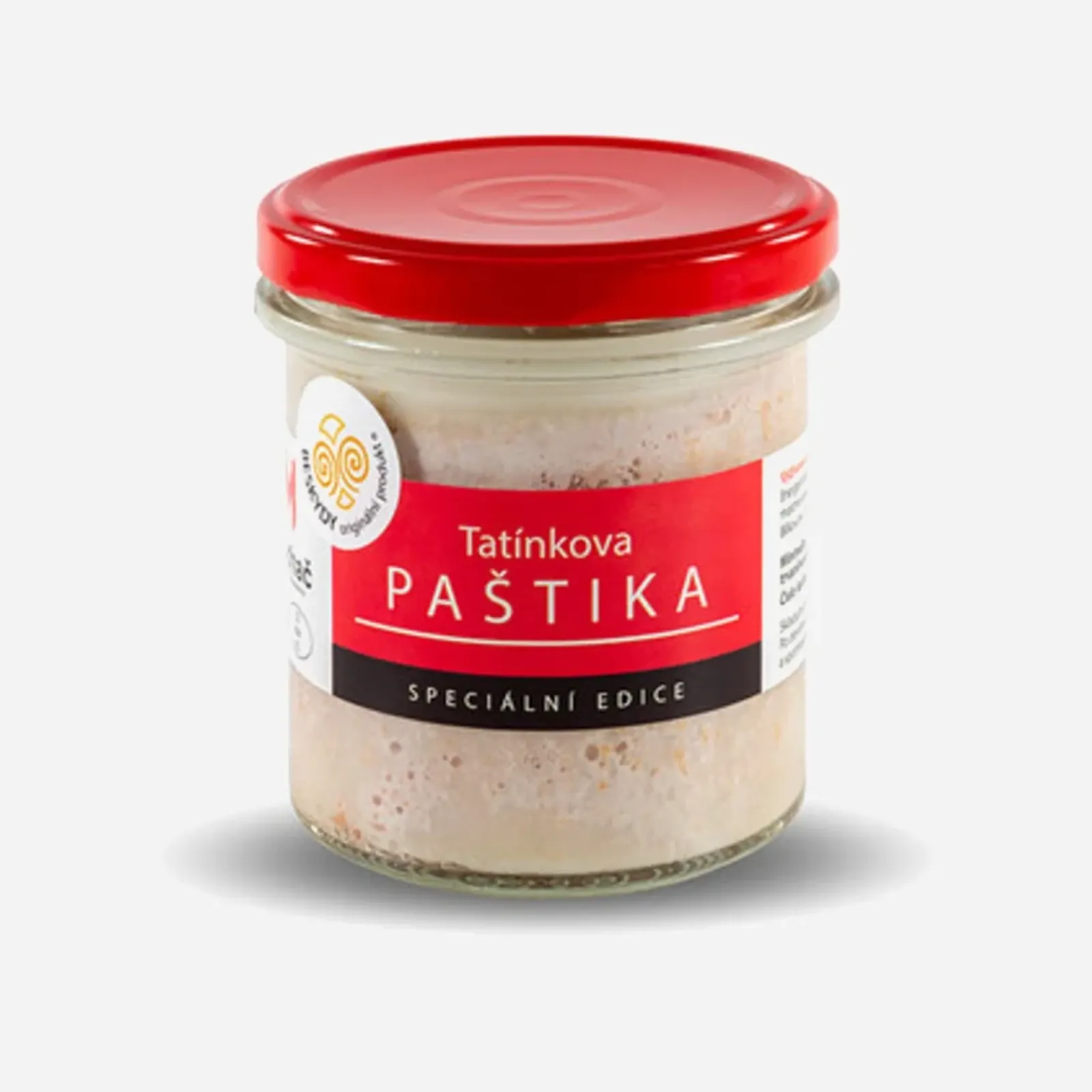 Poctivá paštika z pečeného vepřového masa a jater, dle originálního receptu pana Machače, z kvalitních surovin. Skvělá s čerstvým pečivem.
