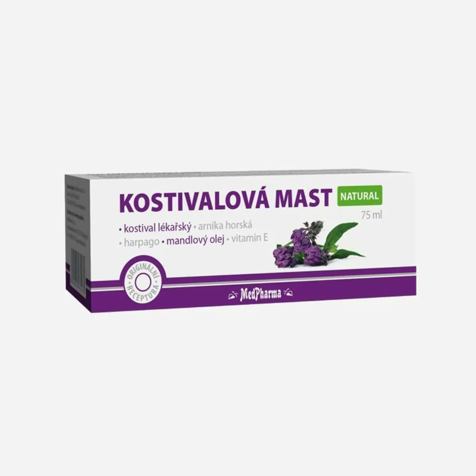 Vlastní, speciálně vyvinutá receptura MedPharma Kostivalové masti je jedinečnou kombinací extraktů z kostivalu lékařského a arniky horské, harpagofyta ležatého (čertův dráp), mandlového oleje, bambuckého másla, glycerinu a vitaminu E.