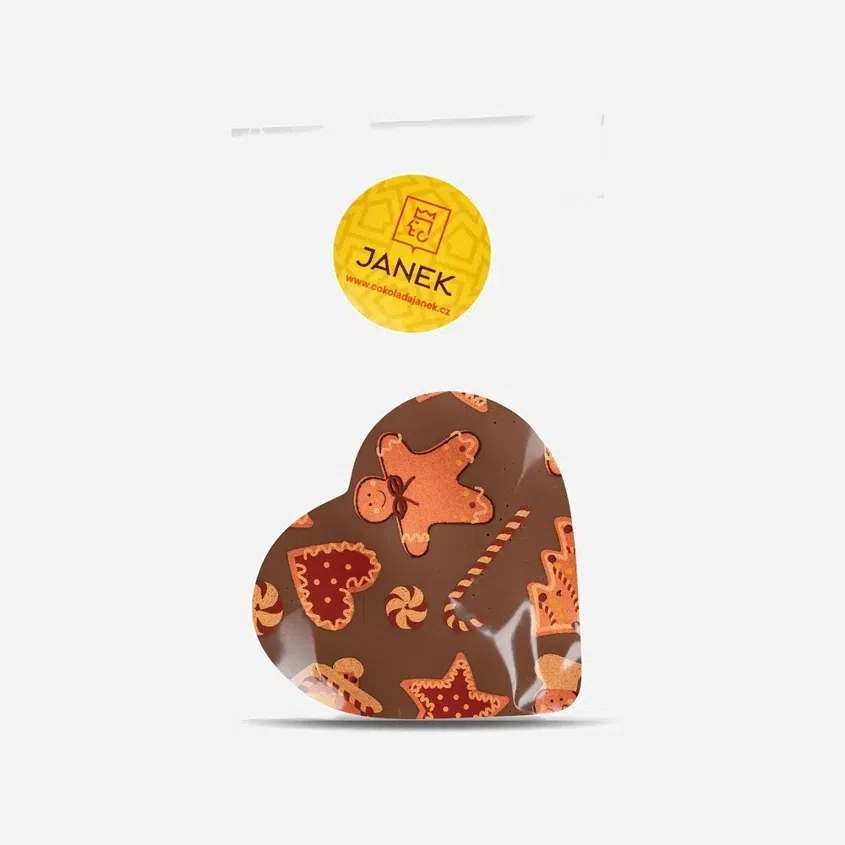 Čokoládovna JANEK Mléčné čokoládové srdíčko s vánočním potiskem, 14 g