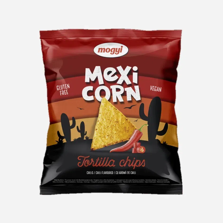 Mogyi Tortilla chips kukuřičný snack s příchutí chilli - expirace, 90 g
