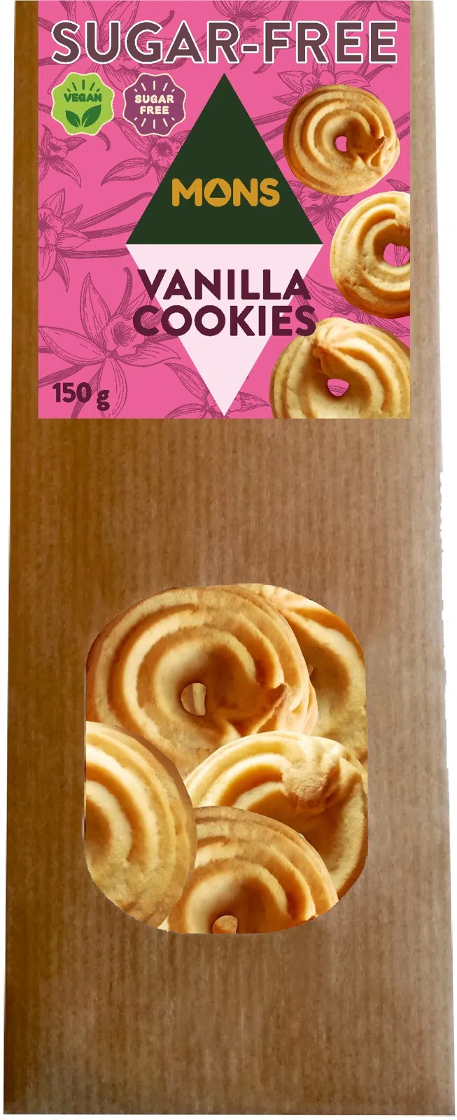 Složení: Pšeničná mouka, margarín [rostlinný palmový olej,řepkový olej), voda, emulgátor (E471), sůl, regulátor kyselosti (E330), vonná látka, barvivo (E160b)], sladidlo {maltitol}, zahušťovadlo (E415), prášek do pečiva (kypřicí látka: E450i, E500ii), jedlá sůl, vanilin, vanilinové aroma.